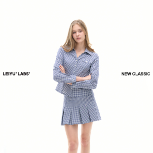 LEIYU 防走光学院风半身短裙 LABS格纹百褶裙半身裙女春2026年新款