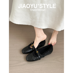 尖头套脚女鞋 大东浅口鞋 简约高跟粗跟通勤单鞋 新款 24春季