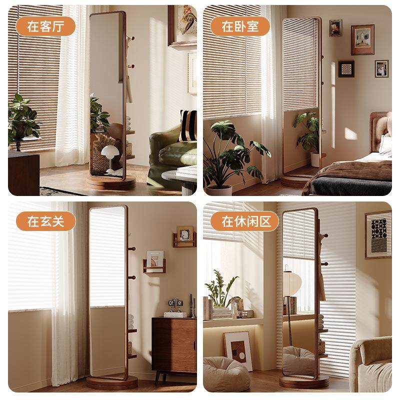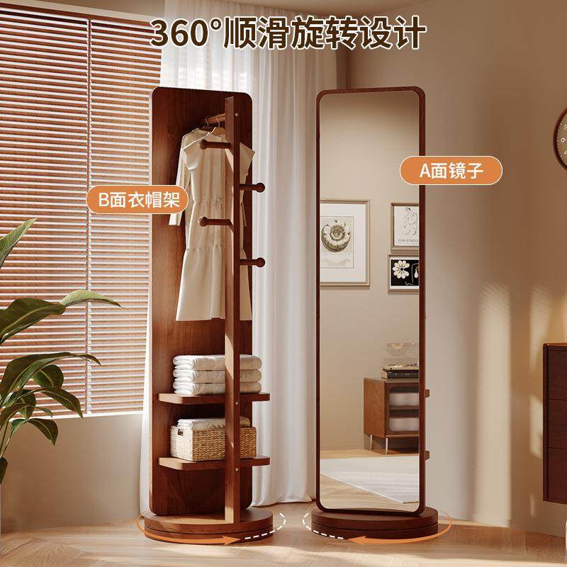 旋转全身镜落地镜家用卧室可移动试衣大镜子带挂衣帽架一体穿衣镜