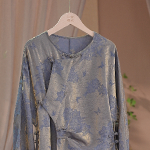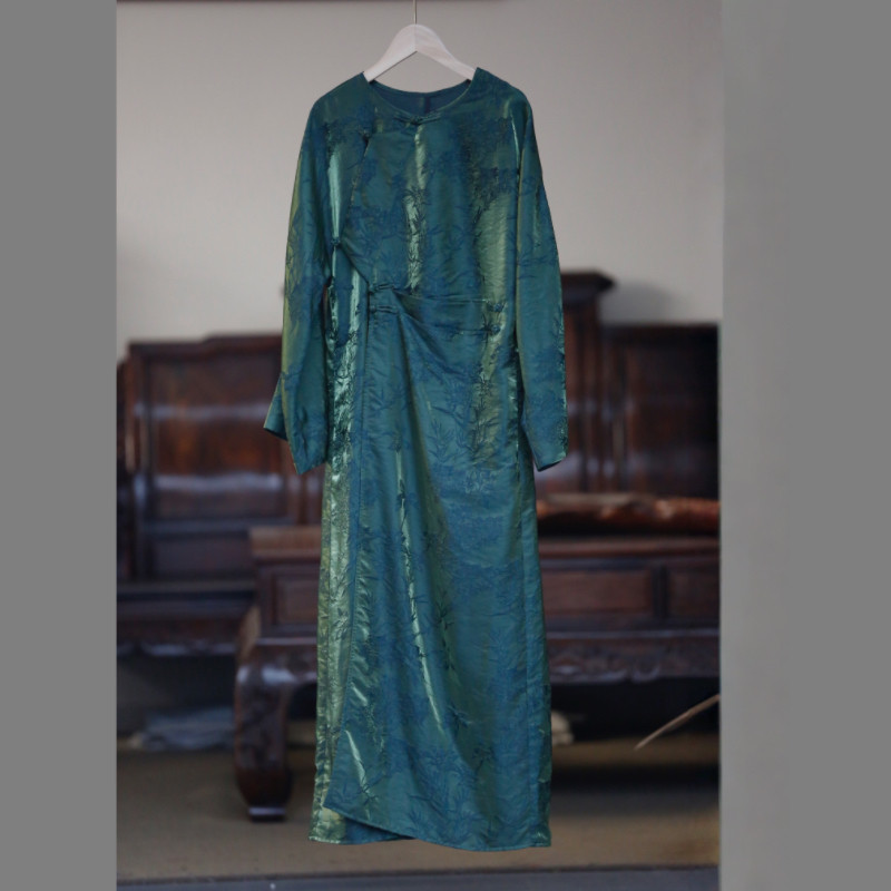 如素慢衣新中式 斜襟国风连衣裙60099 提花收腰显瘦连肩袖