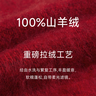 100纯羊绒羊绒衫 女圆领加绒毛衣女加厚秋冬内搭一体绒打底羊毛衫