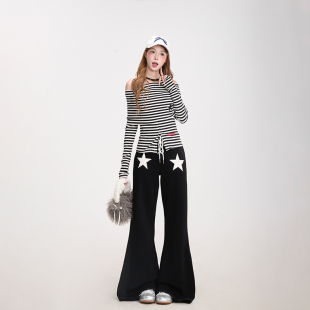 阔腿显瘦喇叭裤 NERESUM五角星印花绑带微喇卫裤 女秋冬加厚美式