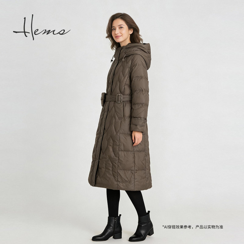 羽绒服女226A5B82 精英衣橱造型设计感收腰长款 海尔曼斯25冬季 新品