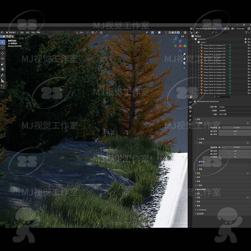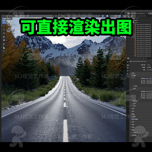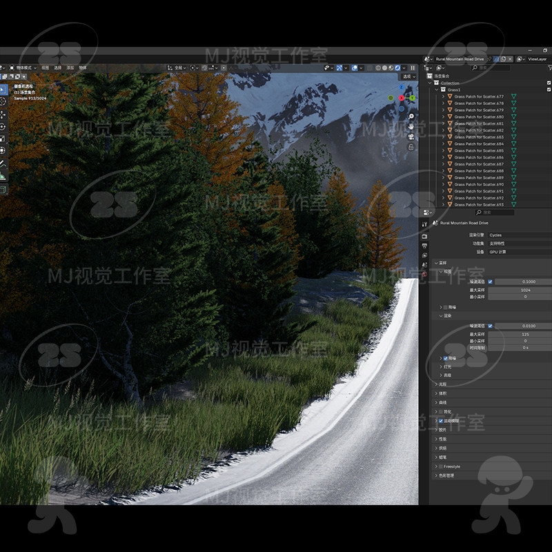 blender公路乡村山路森林雪山欧洲场景模型建模素材渲染3175