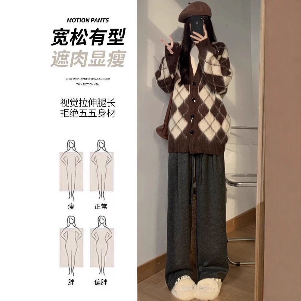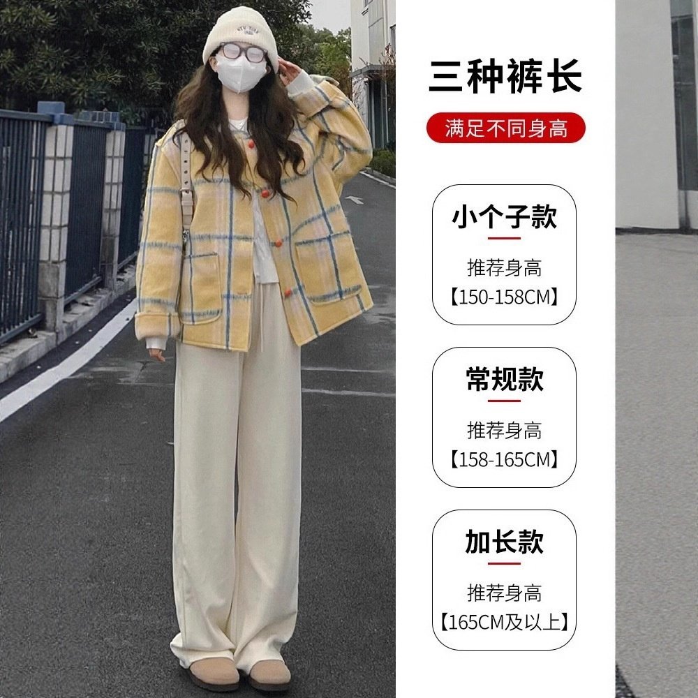 高腰小个子慵懒软糯春秋阔腿裤 深灰色糯米裤 女秋冬25加绒加厚新款