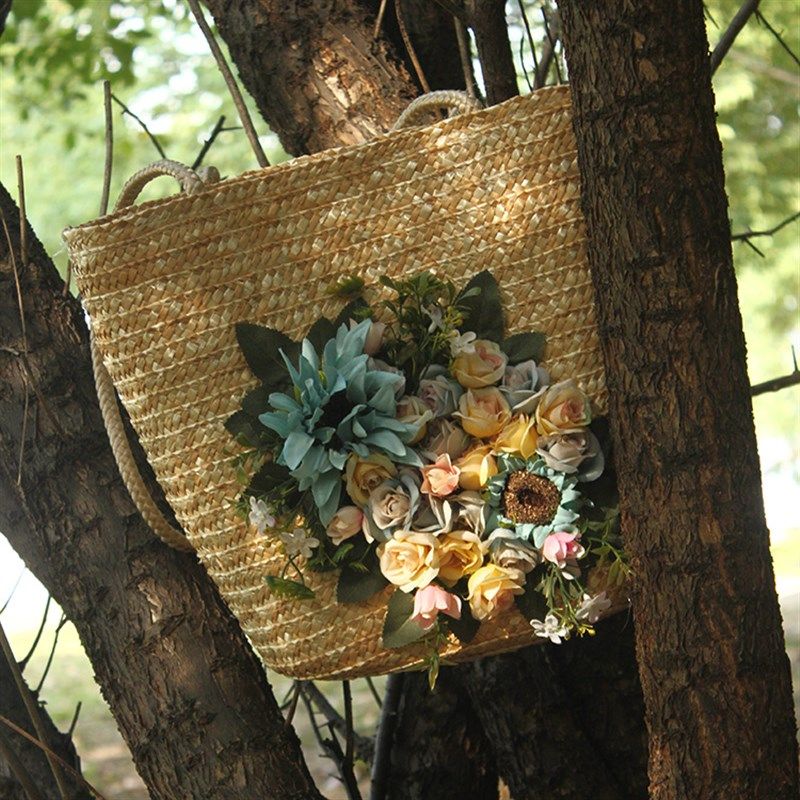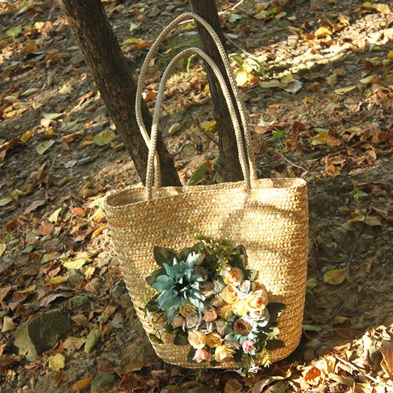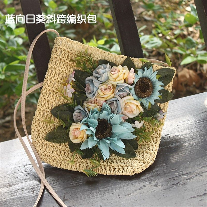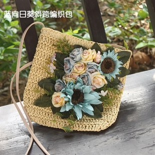 女包夏季 花朵手工度假草编包编织包单肩包草包海边沙滩大容量包包