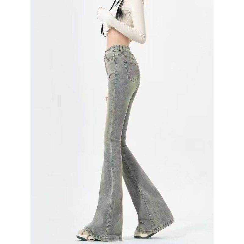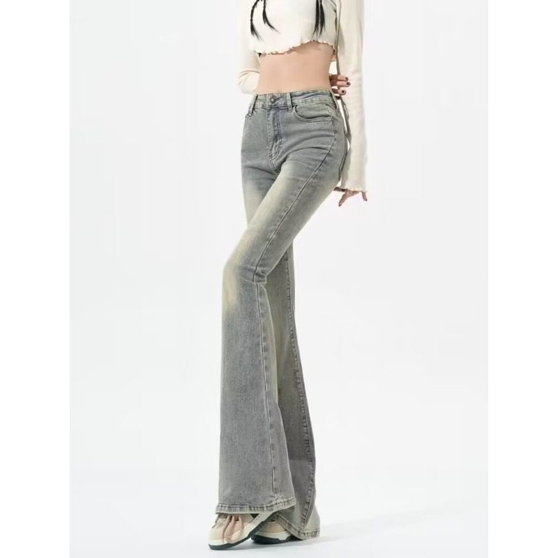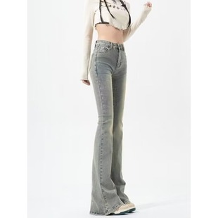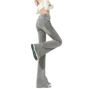 宽松直筒喇叭裤 四面弹高腰大码 女加长加绒阔腿裤 175高个子牛仔裤