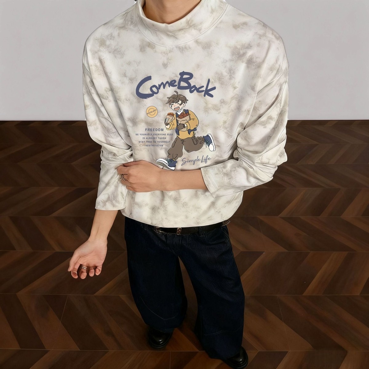 港风印花上衣男保暖韩版 长袖 2025新款 德绒扎染T恤秋冬装 潮牌 新款