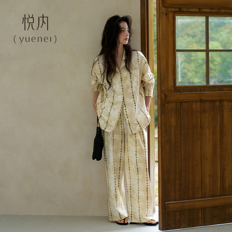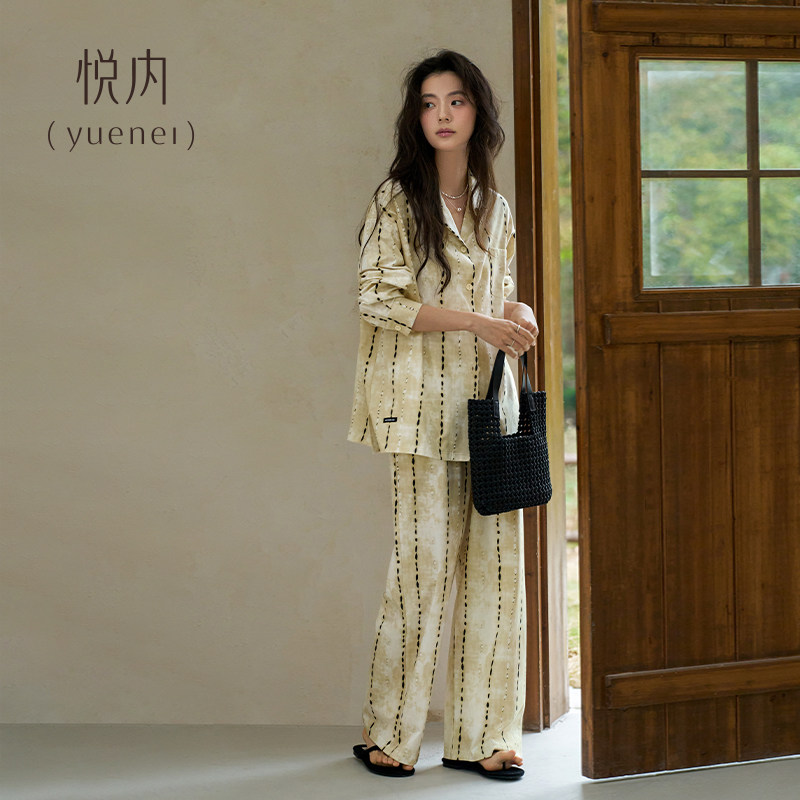 条纹休闲开衫 悦内睡衣女款 家居服时尚 纯棉长袖 老钱风可外穿 春秋季