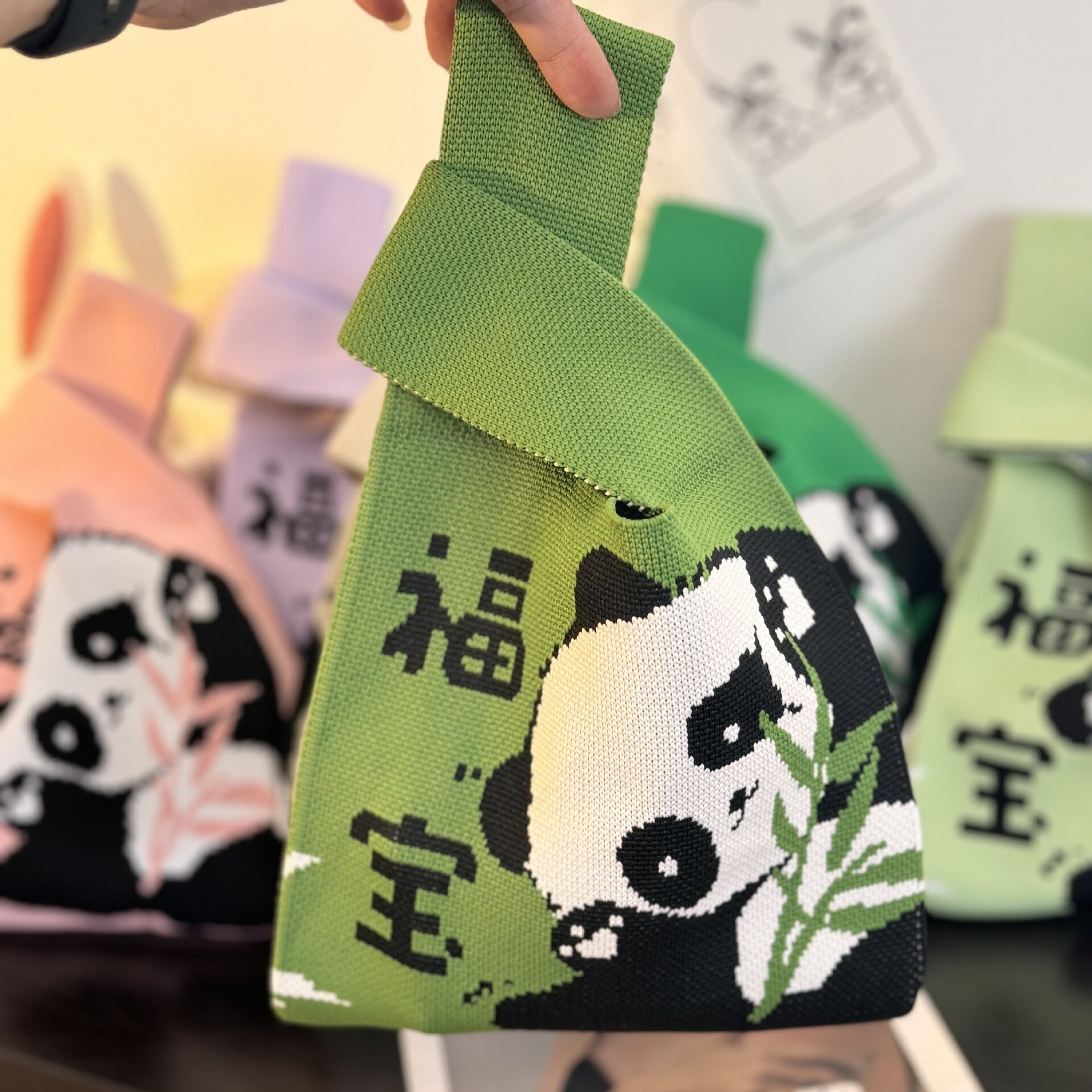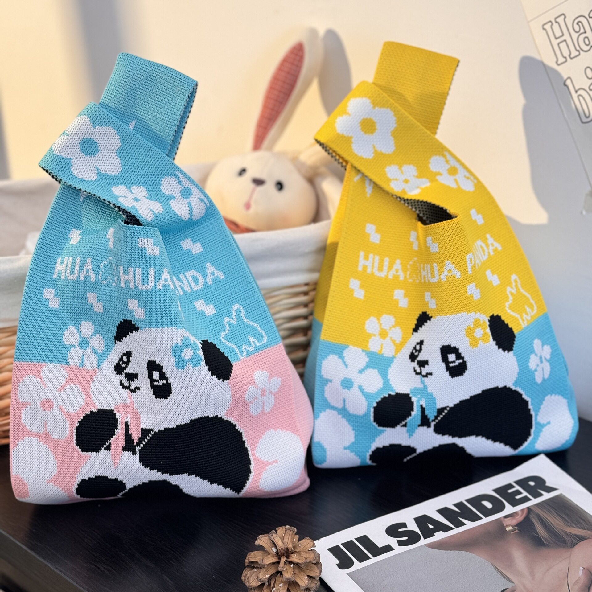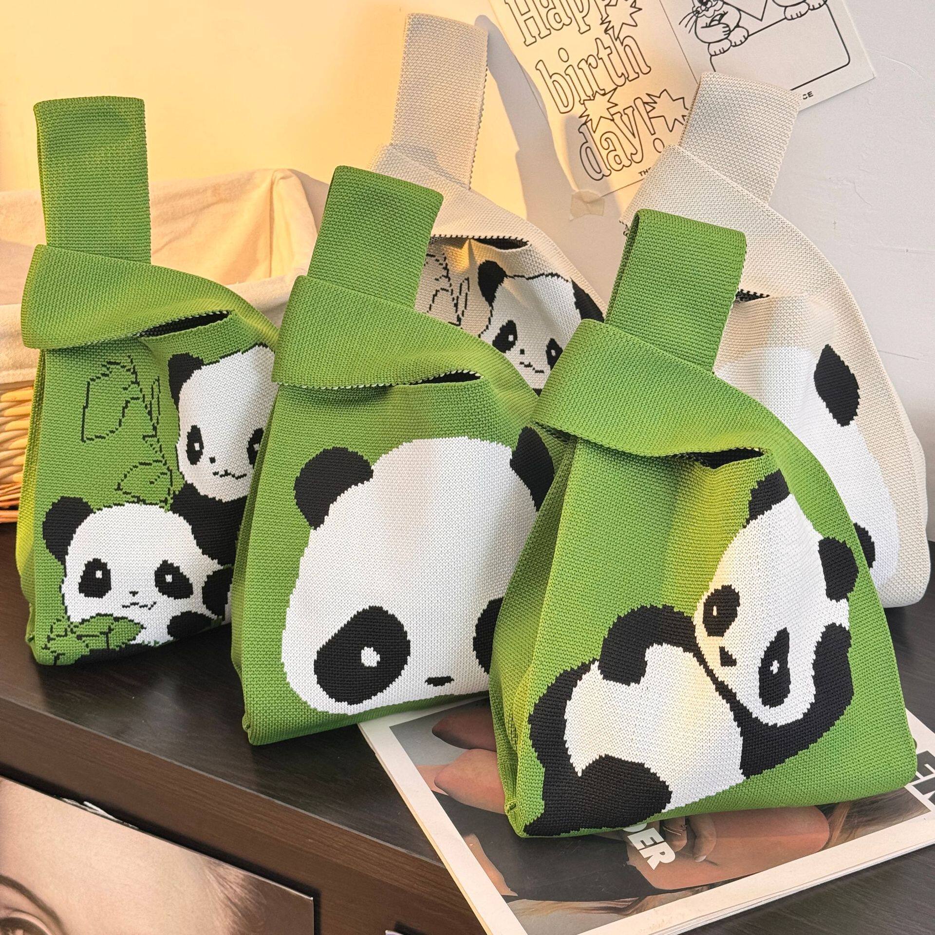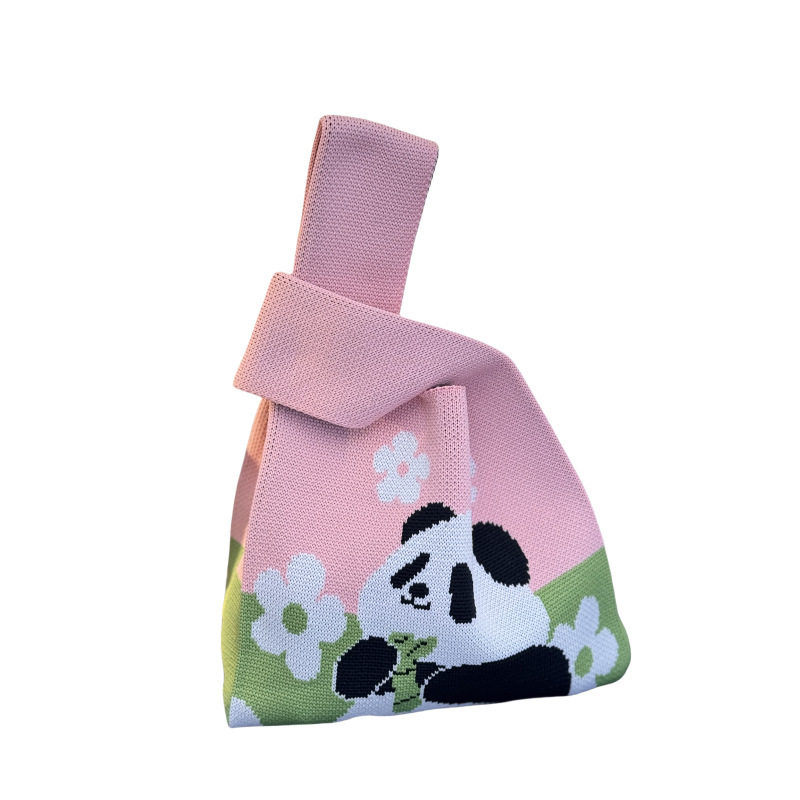 拼接熊猫背心包2025新款 手提包针织毛线手提袋 百搭马甲包休闲时尚