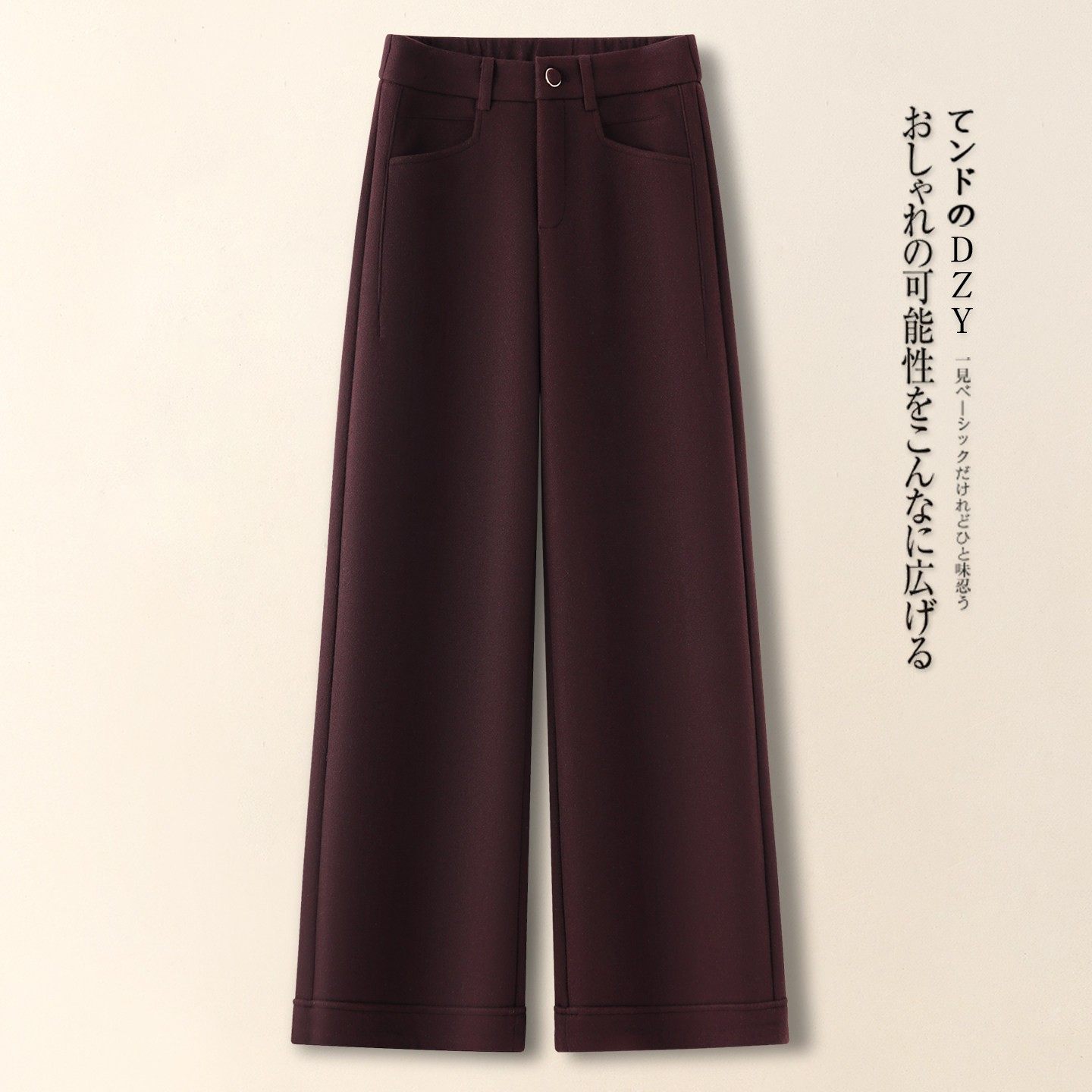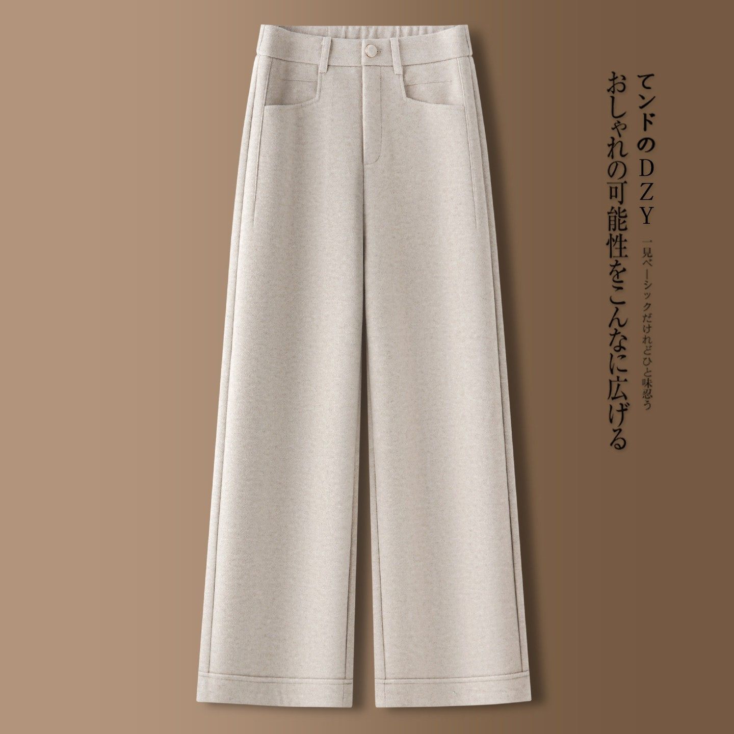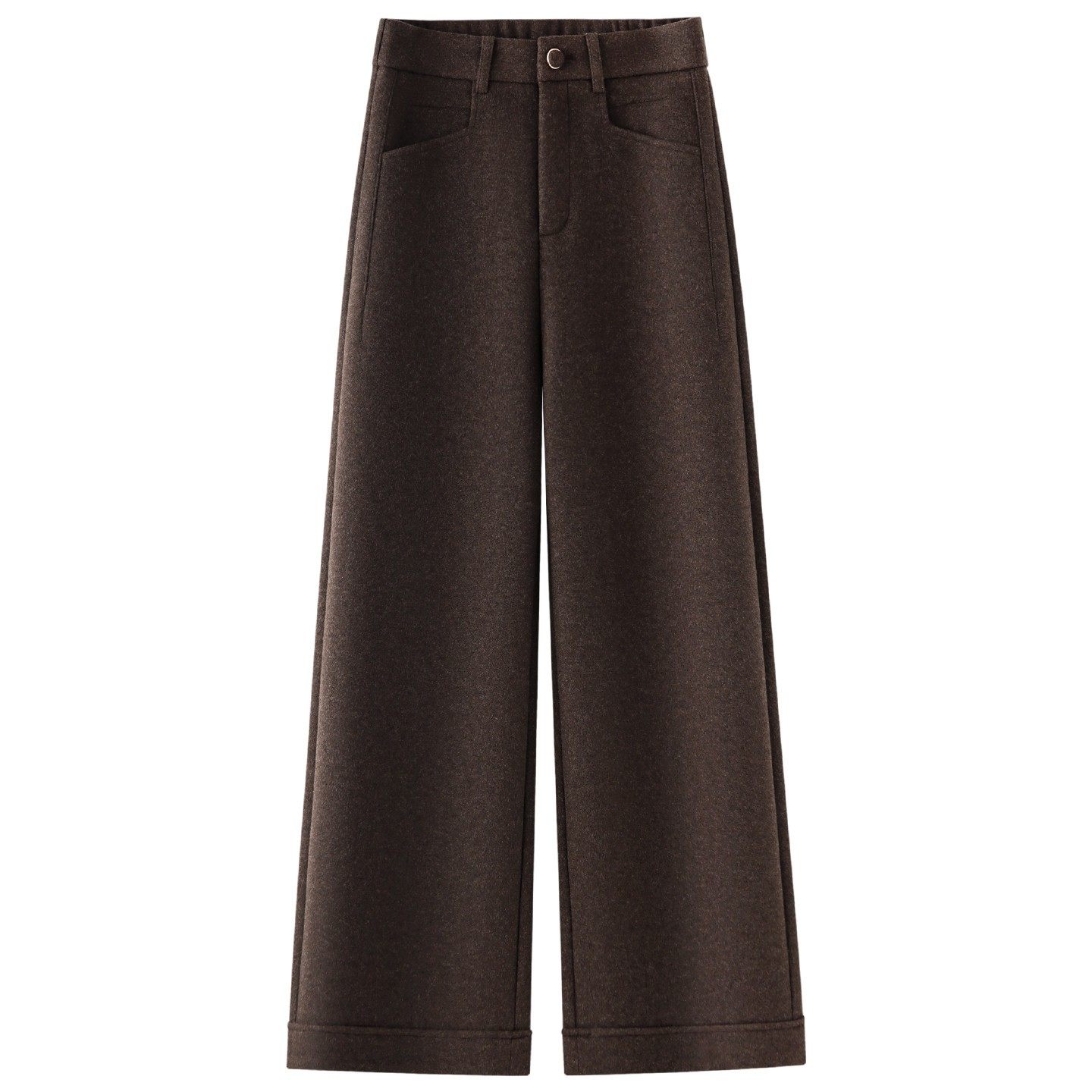 咖色羊绒阔腿裤 子休闲九分羊毛呢直筒裤 女秋冬季 裤 2025超火 韩版