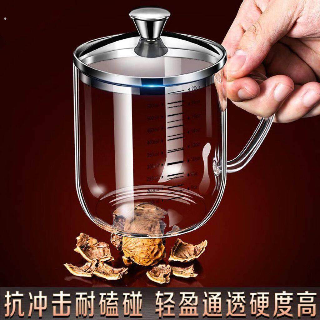 德国刻度杯子耐高温计量牛奶咖啡杯玻璃茶杯带盖冷饮水杯