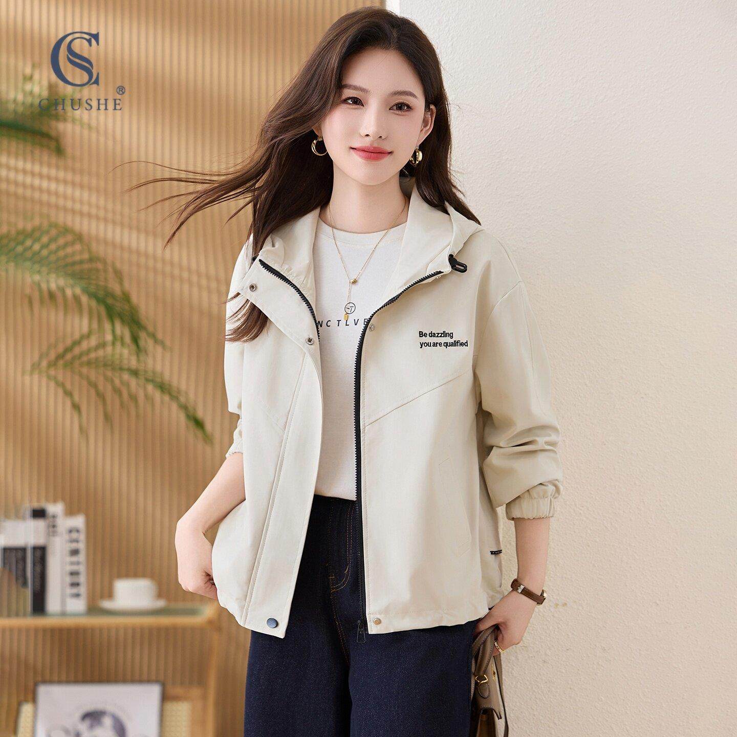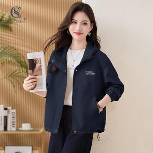 短款 宽松百搭刺绣字母连帽夹克上衣小个子冲锋衣 休闲外套女秋冬季