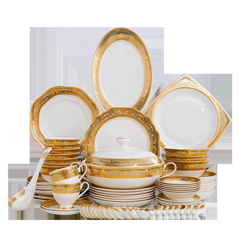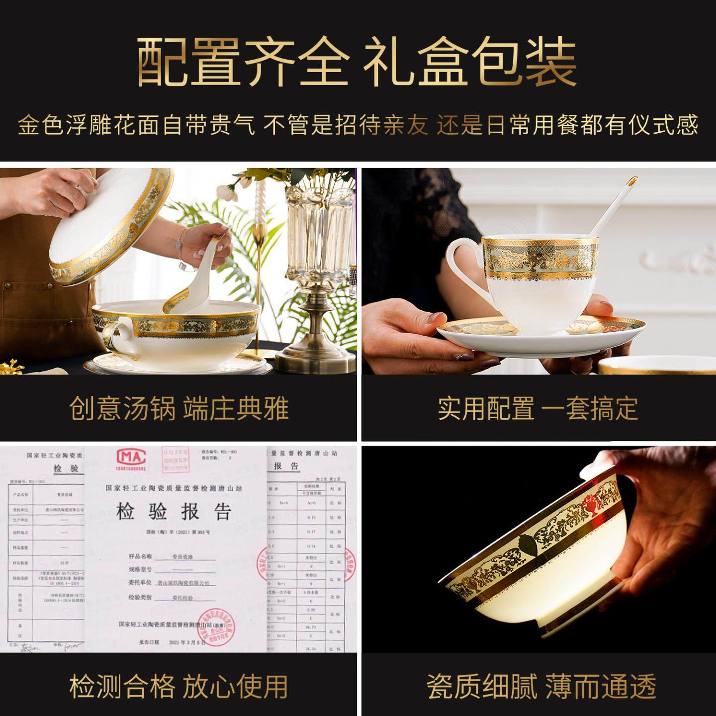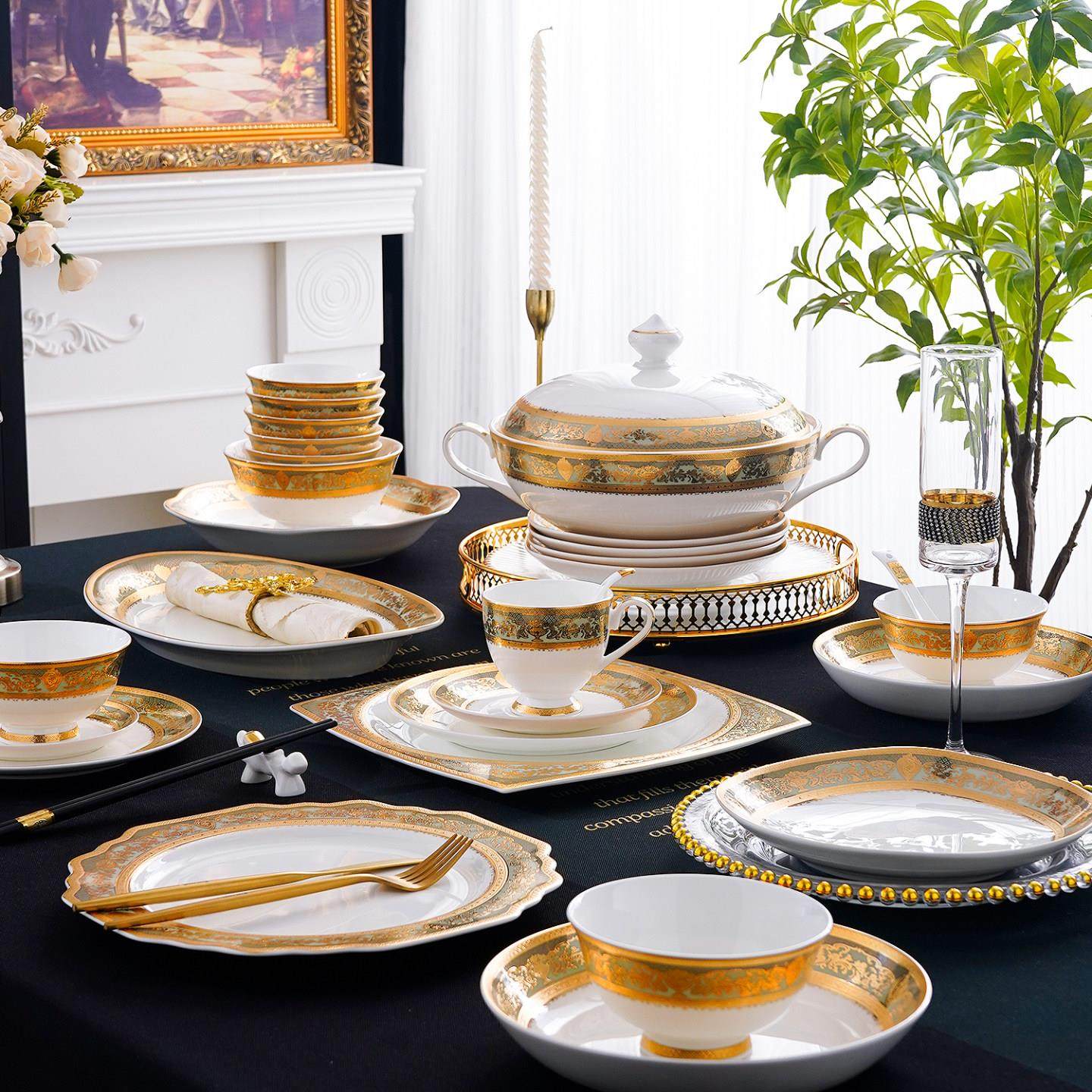 家用 陶瓷器碗碟套装 景德镇骨瓷餐具套装 高档奢华送礼碗盘组合欧式
