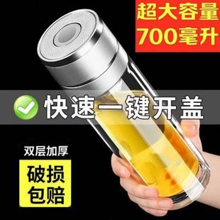 一键开盖玻璃杯保温杯防烫男士 高档泡茶杯速开茶水分离杯车载水杯