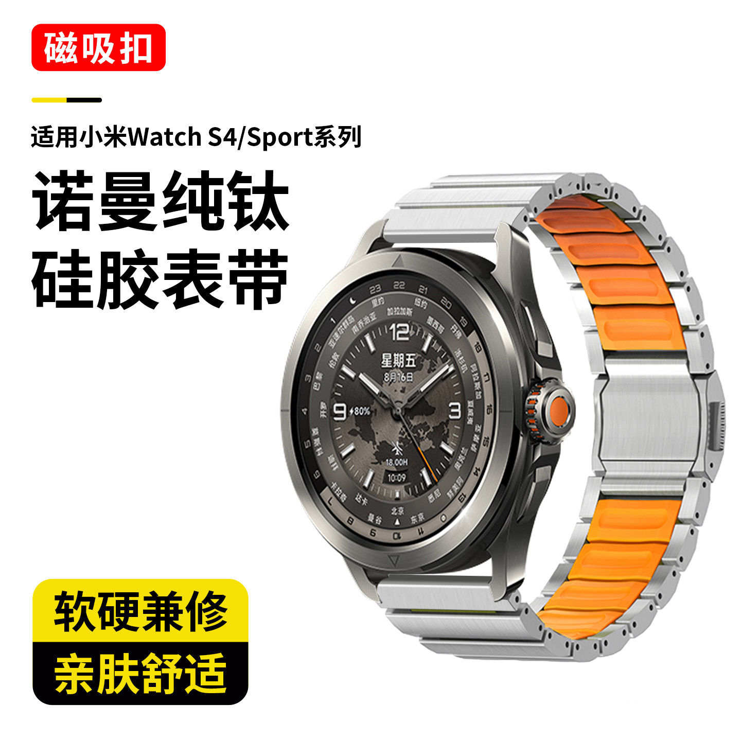 S4磁吸扣纯钛硅胶表带Watch S1pro手表带color2替换带Sport钛金属22mm新款 高级腕带 适用小米Watch