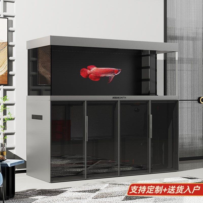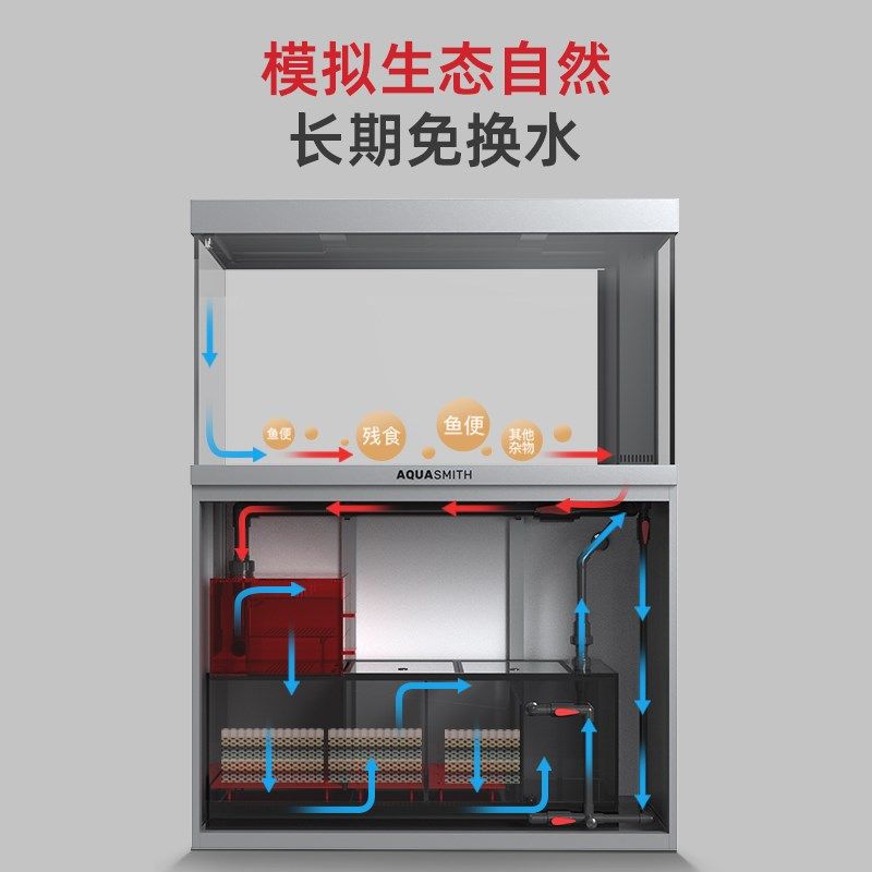 极速老渔匠龙鱼缸超白玻璃大w型落地底滤鱼缸客厅观赏鱼生态智能