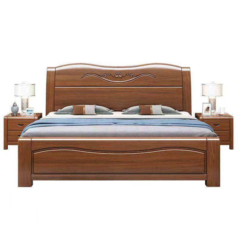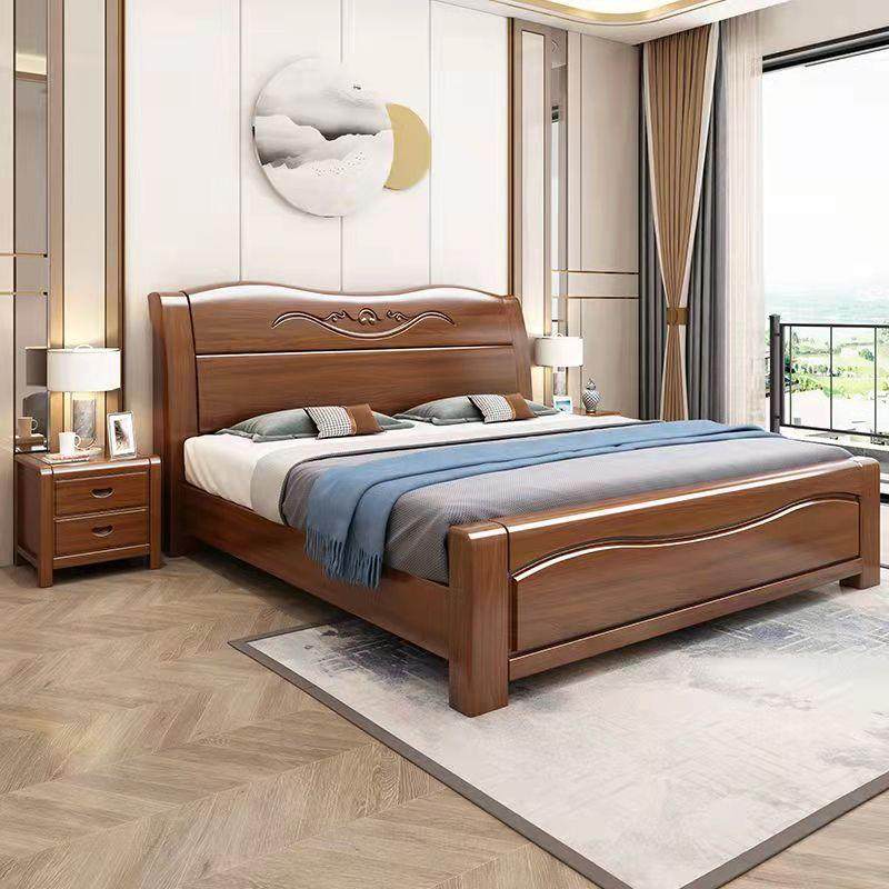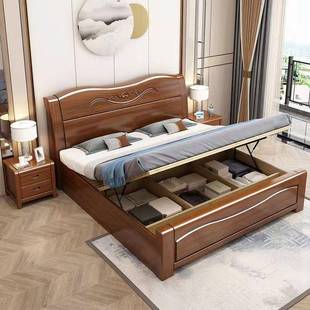 金丝胡桃木实木床1.8米双人床现代简约1.5m中式 婚床主卧室储物床