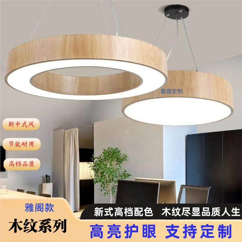 档LED原木办具公吊灯景区客栈服装 WGR店餐馆圆环灯圆高形纹木吸顶