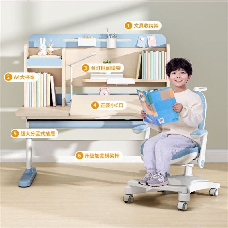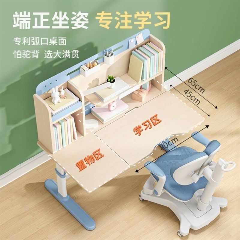 大满贯儿童学习桌小学生书桌弧口写字桌家用可升降实木课桌椅套装
