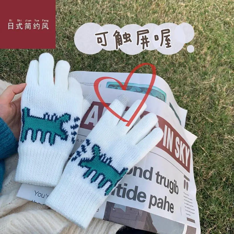 防寒手套 保暖加绒加厚毛线针织骑行男女同款 可触屏棉手套男士 冬季