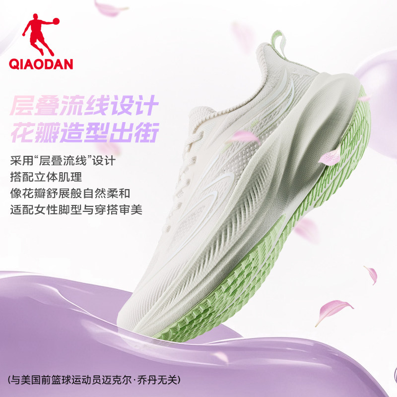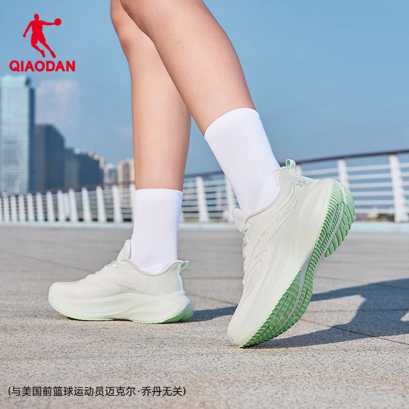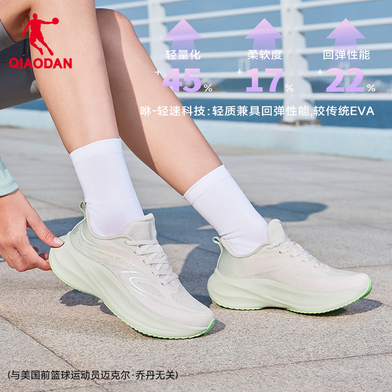 网面透气跑步鞋 乔丹软底花朵鞋 新款 春季 厚底增高绿色女慢跑运动鞋
