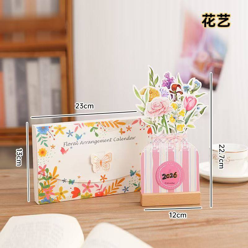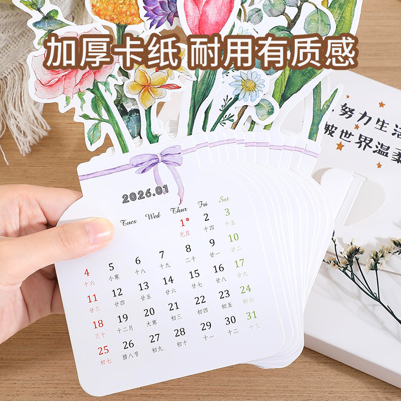 桌面台历 简约卡片式 2026年新款 马年台历立体花卉ins风小清新竖款