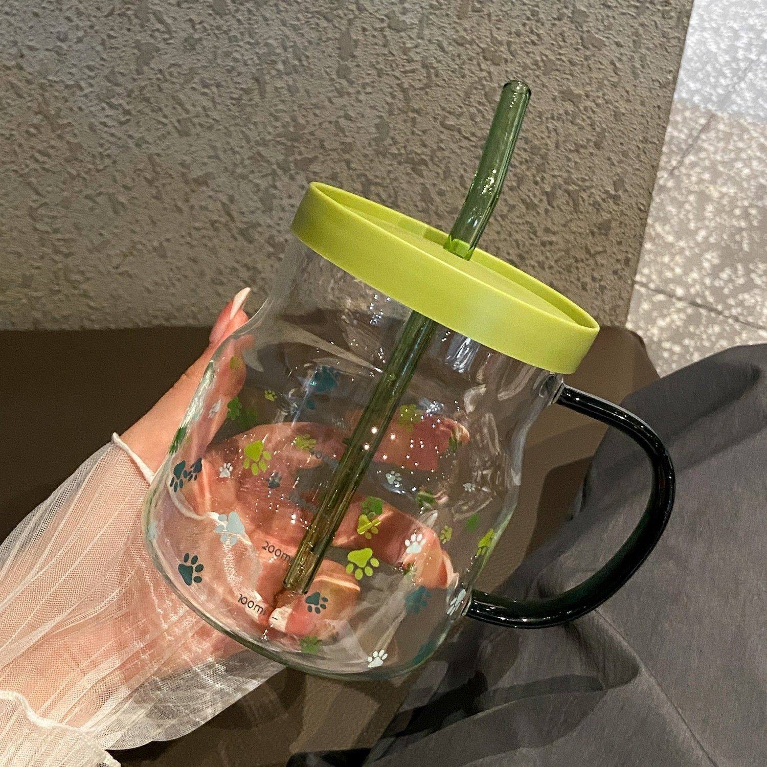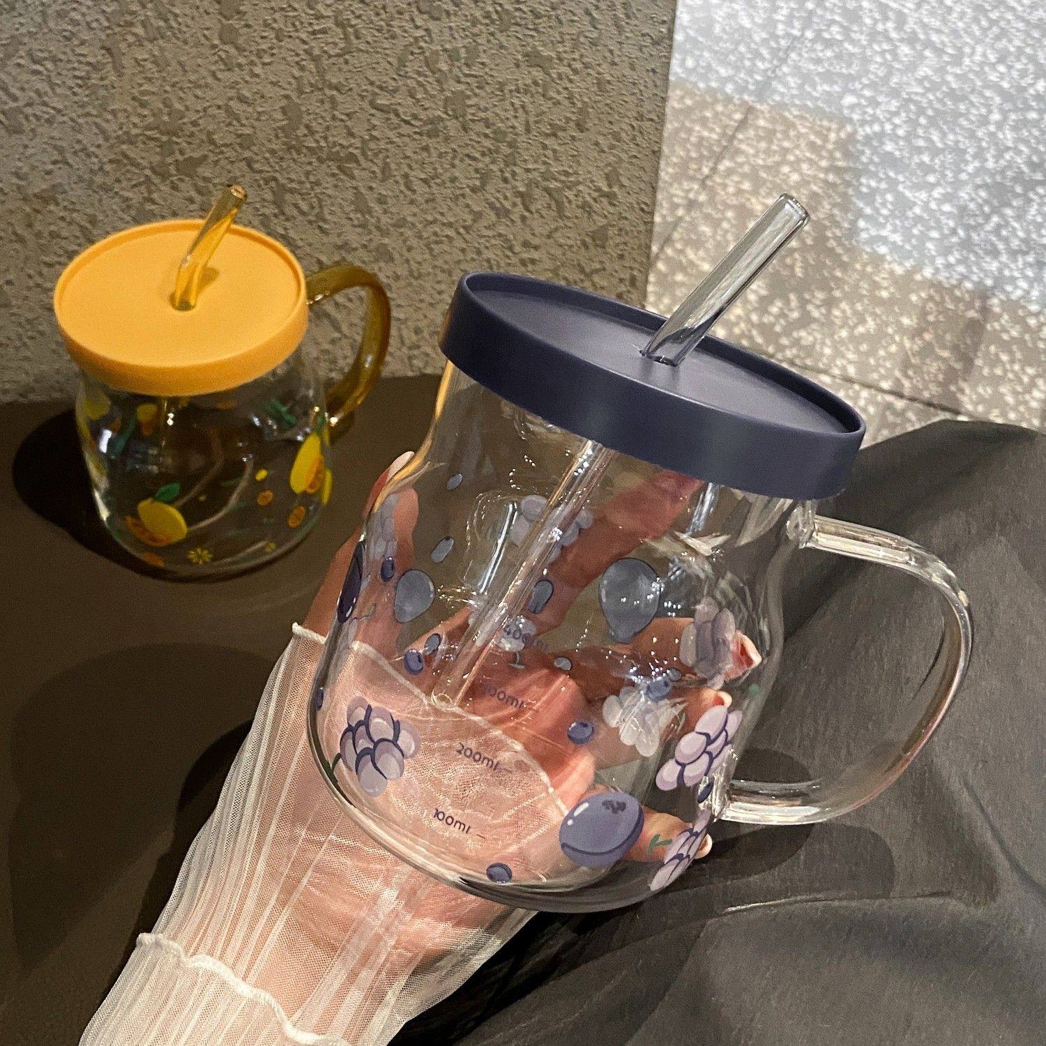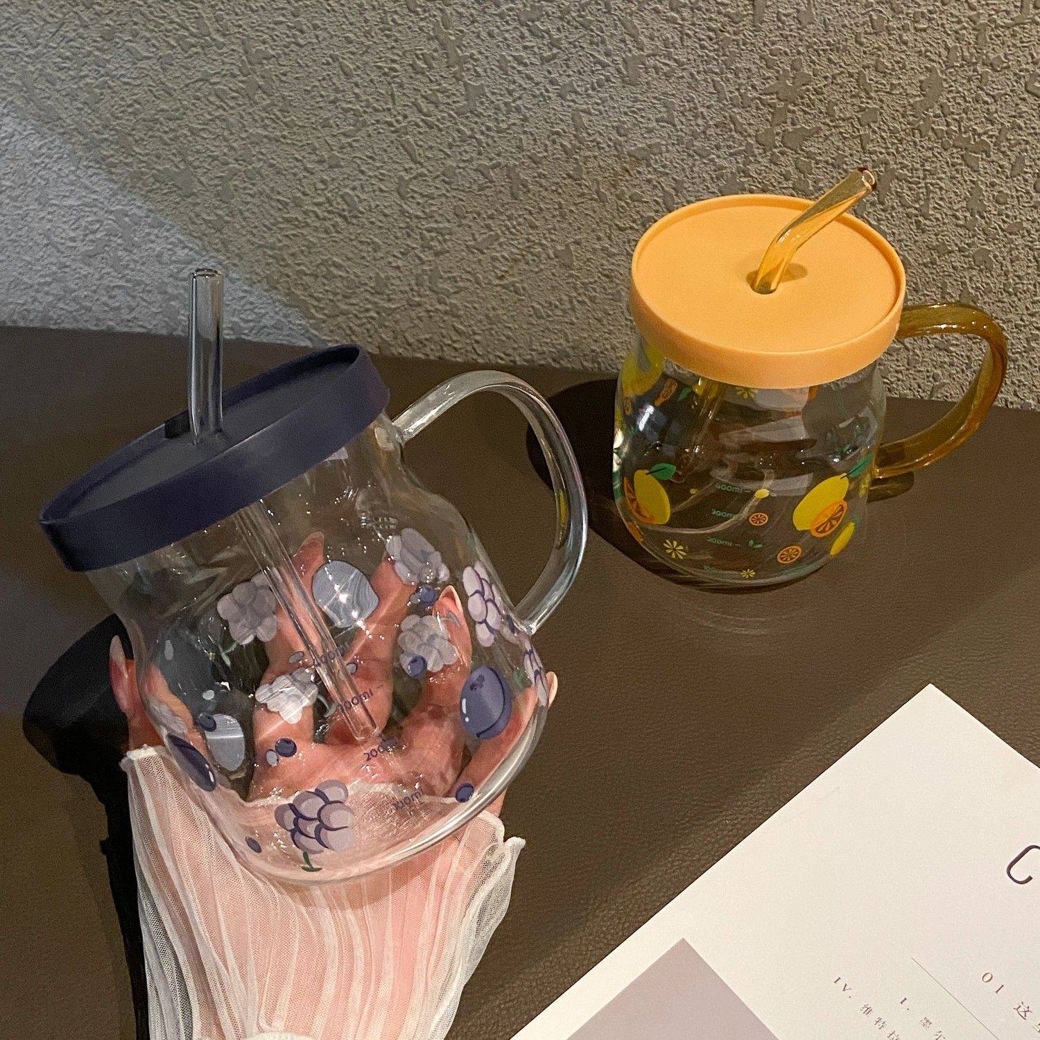 下拉详情领优惠高颜值玻璃杯咖啡杯带盖带吸管牛奶饮料水杯花茶杯