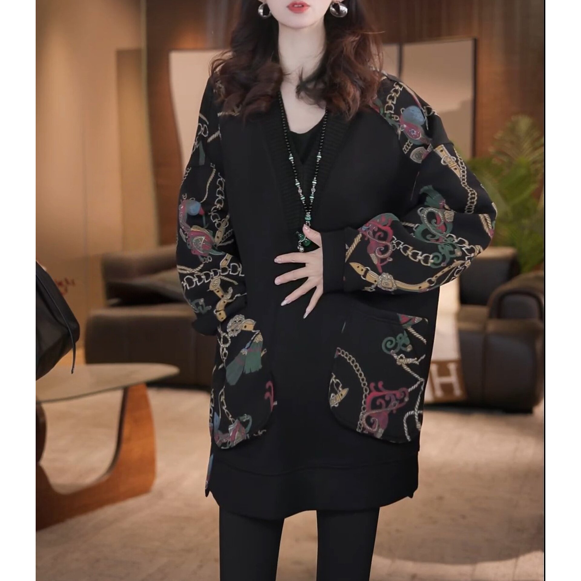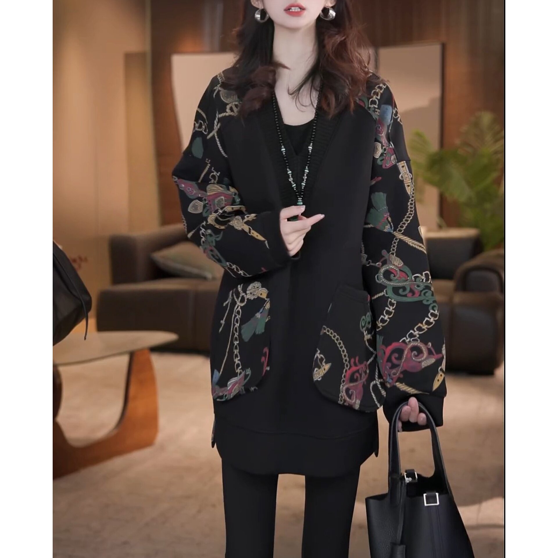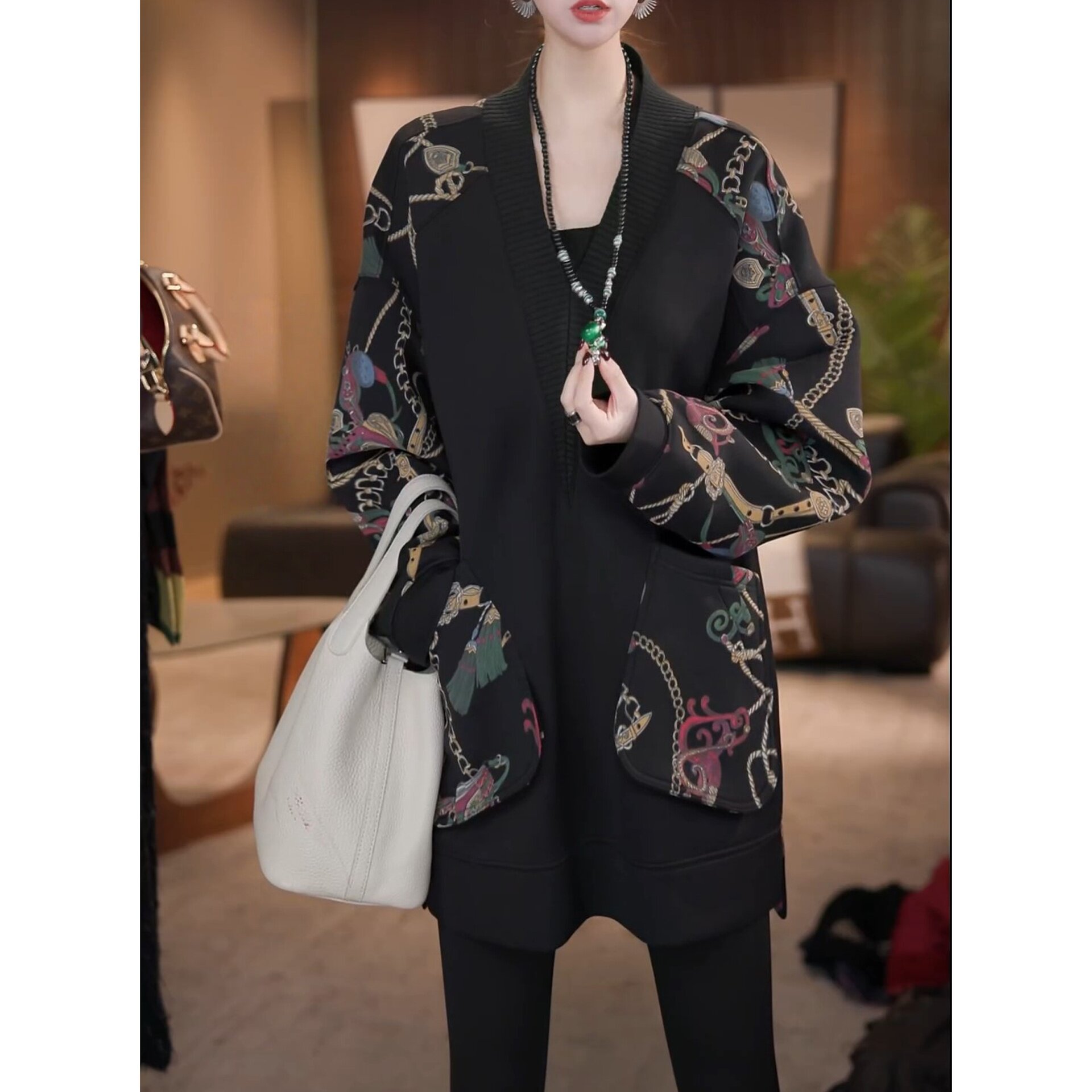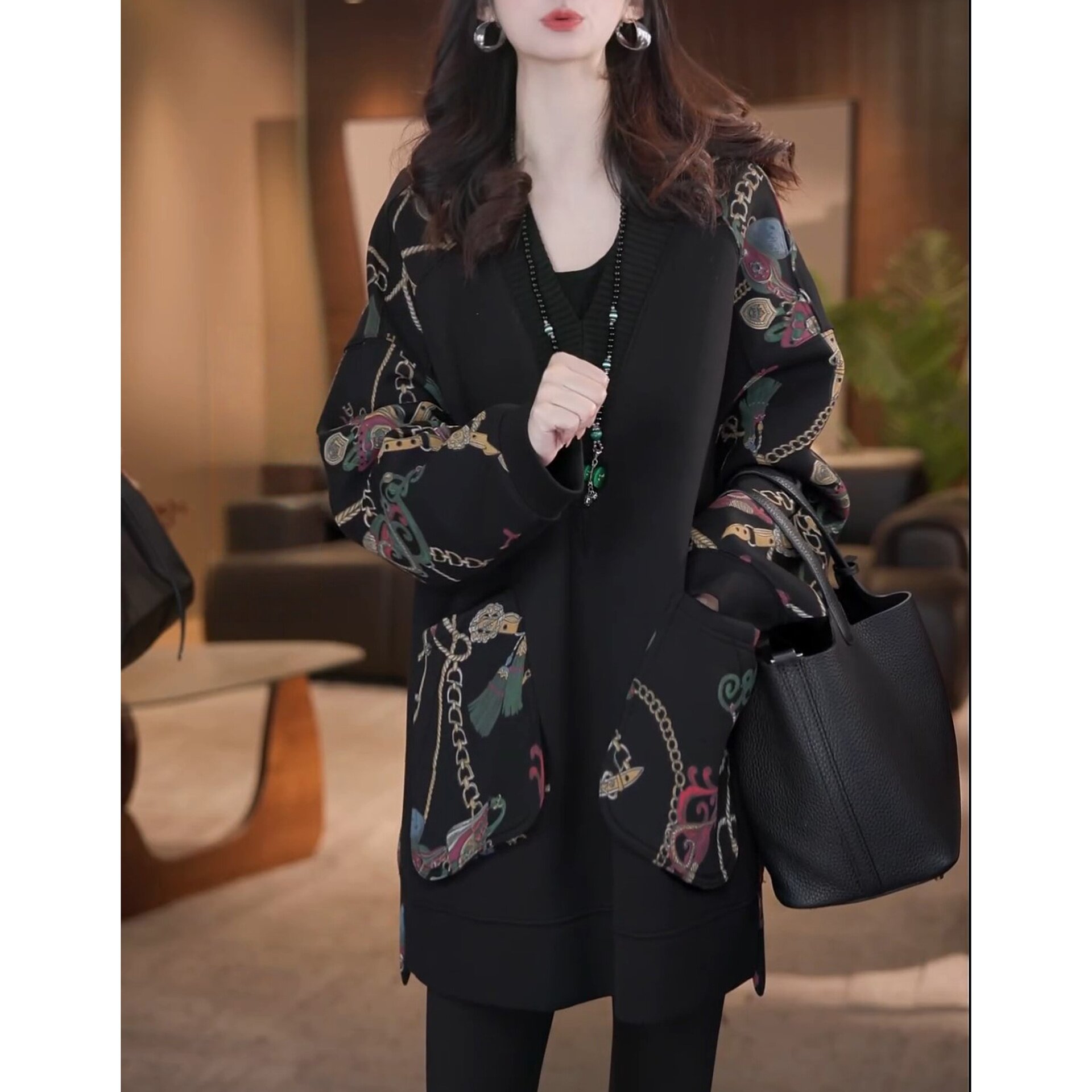复古慵懒休闲卫衣女加绒洋气宽松显瘦V领长袖 时尚 上衣 新款 秋冬季