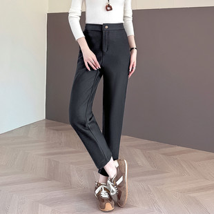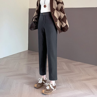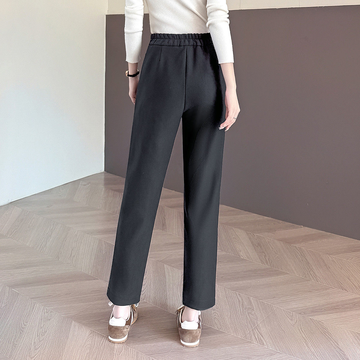 高腰显瘦简约通勤百搭休闲裤 班尼路加绒保暖针织直筒裤 女秋冬季