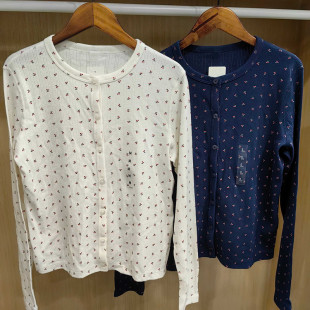 长袖 提花罗纹开衫 T恤打底衫 空调衫 484939 日系女装 485717 2026新款
