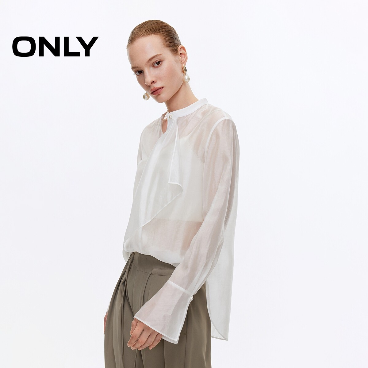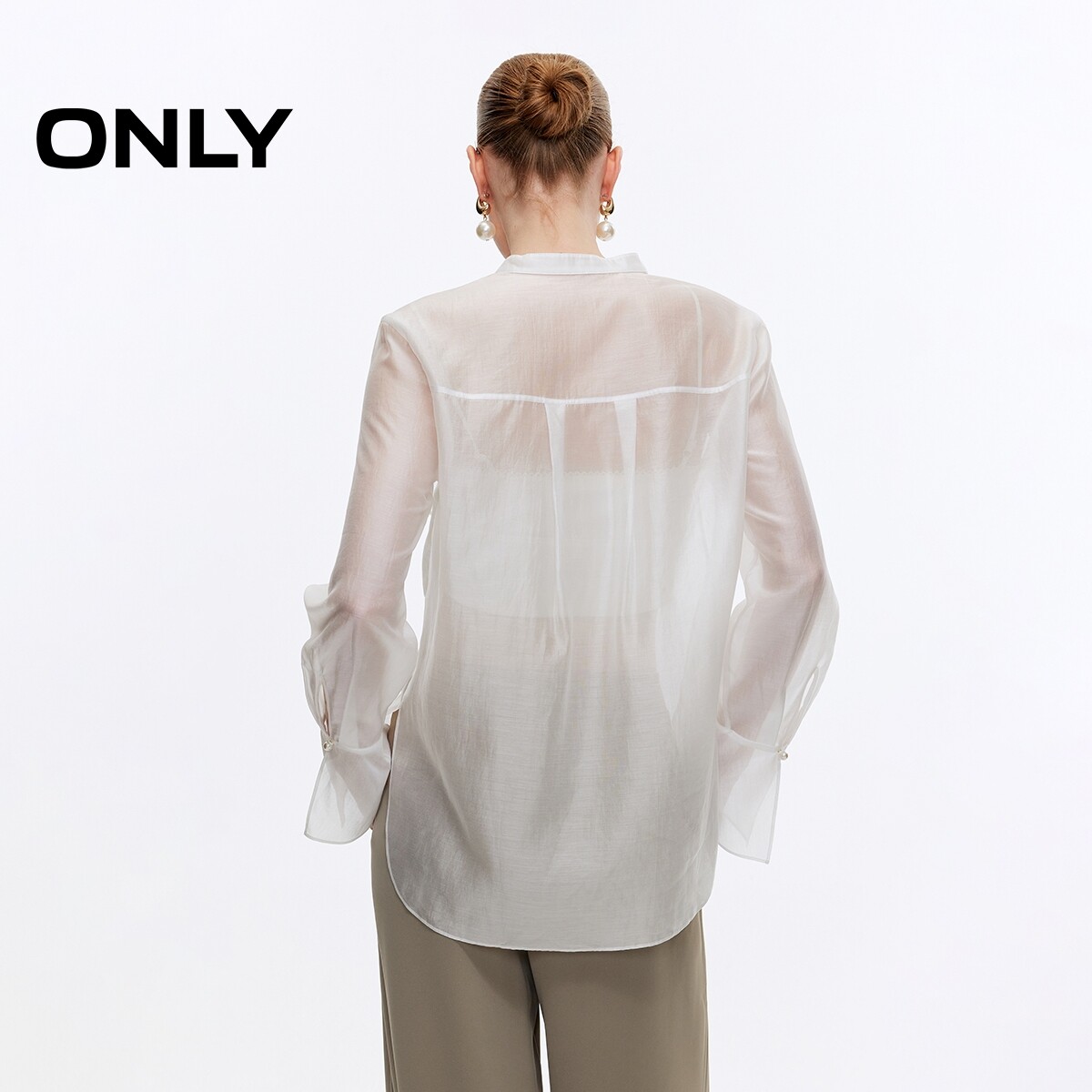衬衫 优雅精致珍珠纽扣轻薄喇叭袖 女 新款 ONLY2026春季
