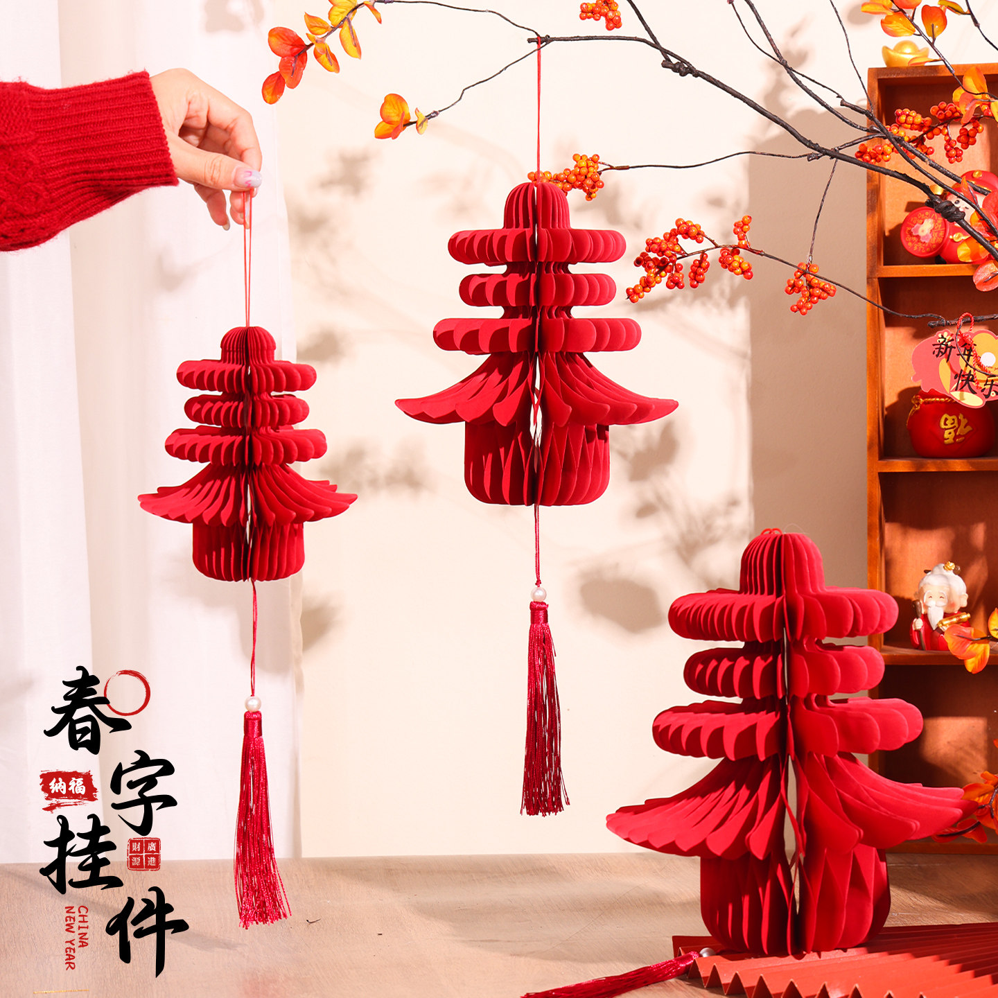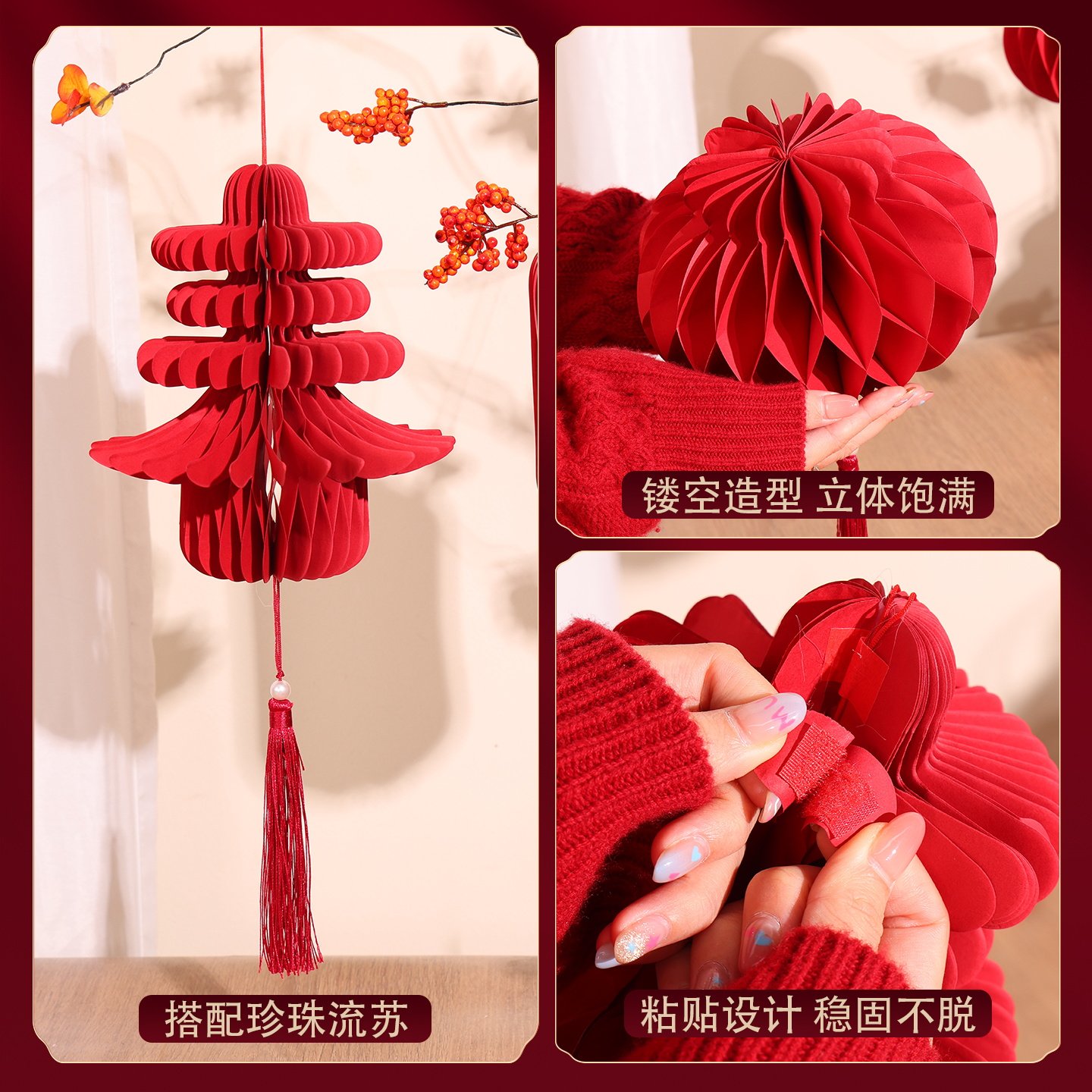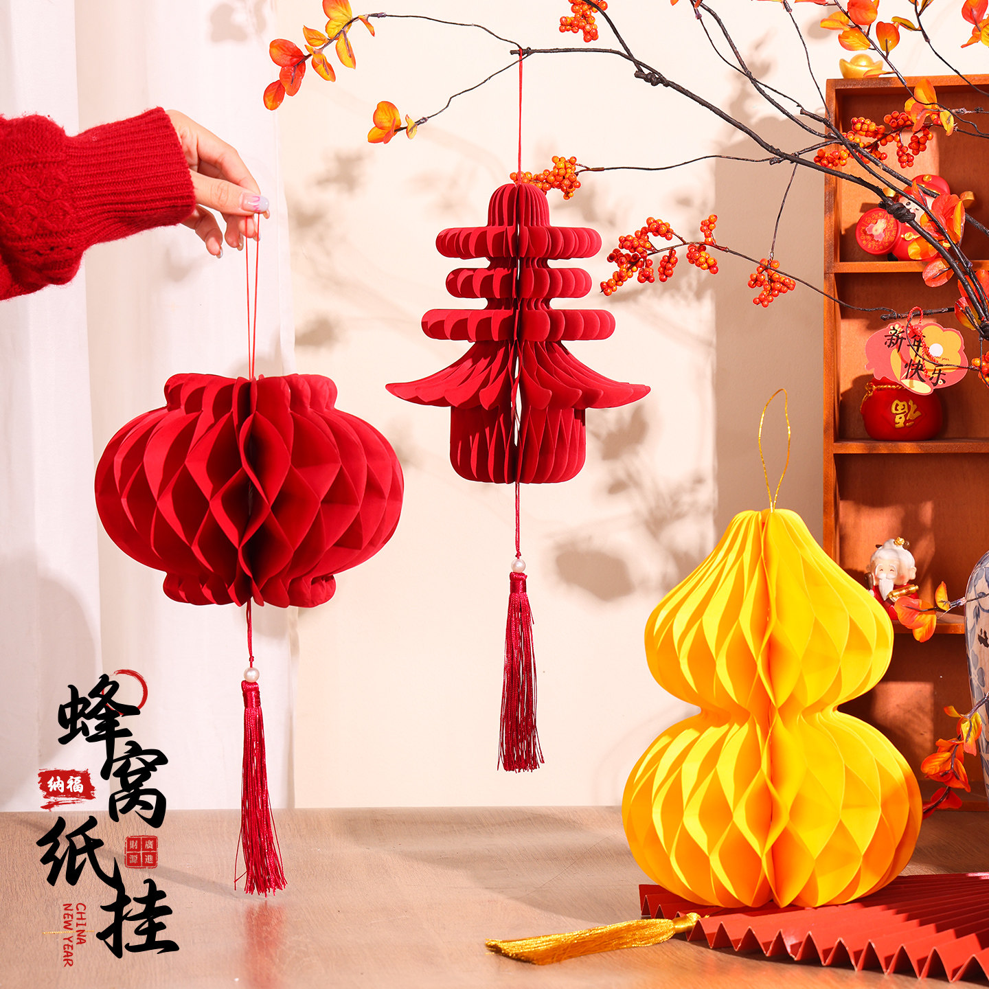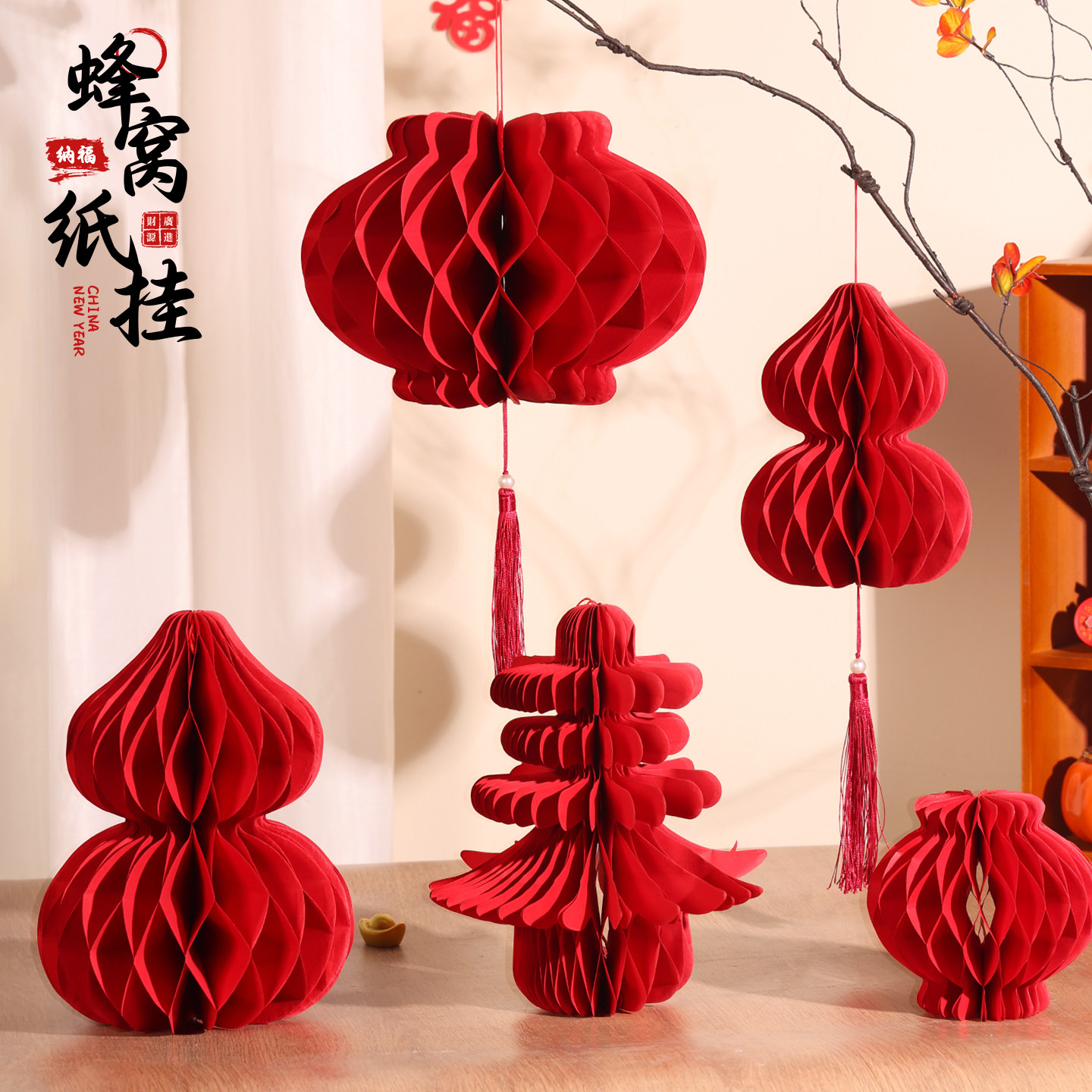 2026新款 新年小红纸灯笼蜂窝福字大门结婚喜庆场景布置小灯笼挂饰