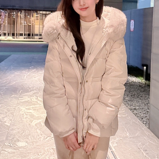 加厚连帽宽松保暖鸭绒外套Z 短款 鸭鸭滑雪羽绒服女士2024冬季 反季