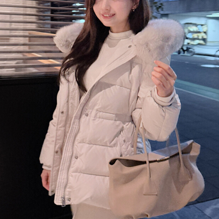 短款 白鸭绒 韩女收腰保暖羽绒服外套女冬 100狐狸毛领 三喜threec