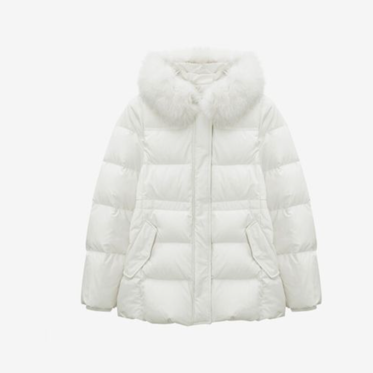 雪中飞2025秋冬新款 轻薄圆领羽绒服休闲外套宽松米白A 女士中长款