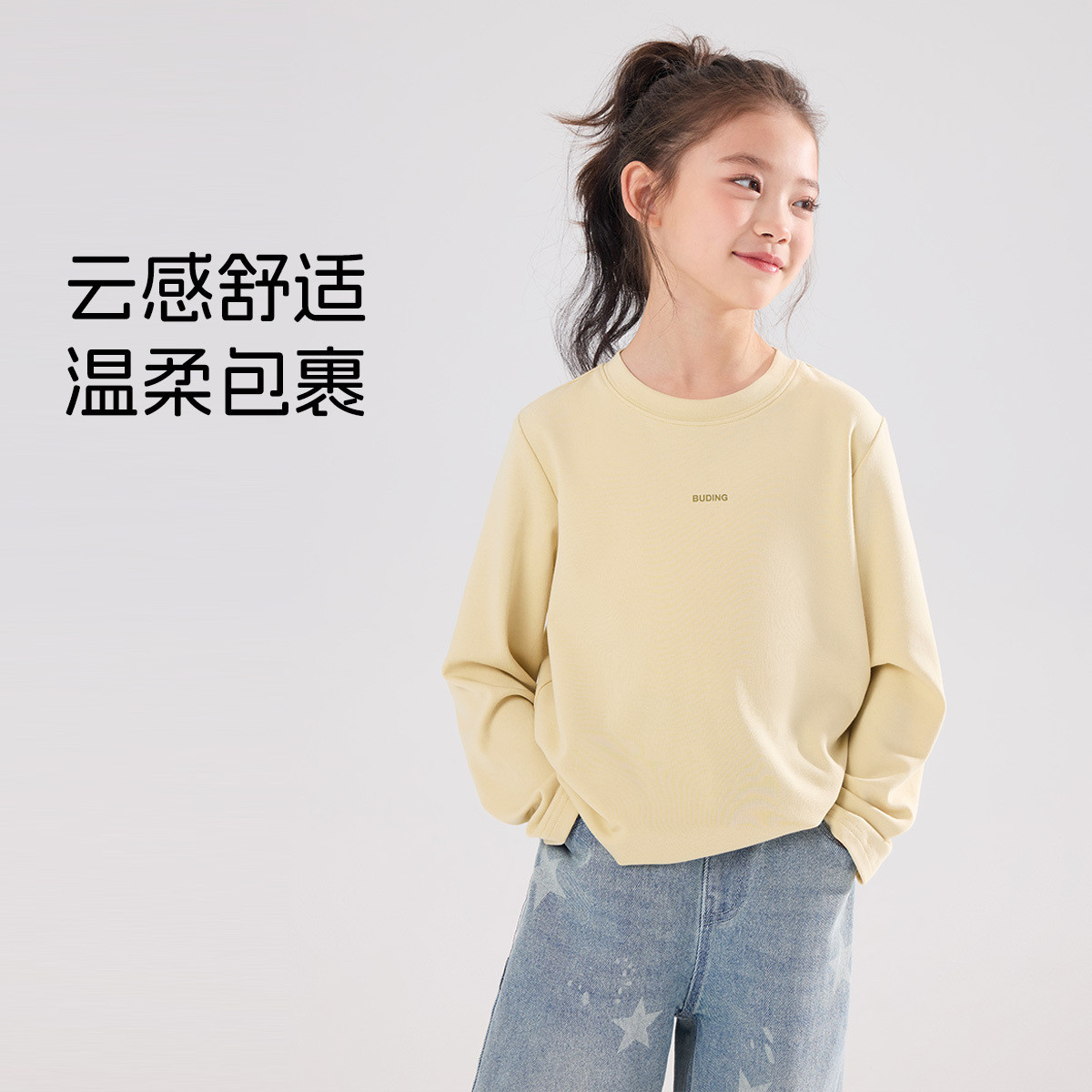 儿童百搭长袖 布丁哈鲁春装 新款 简约上衣2026春季 T恤 女童童装
