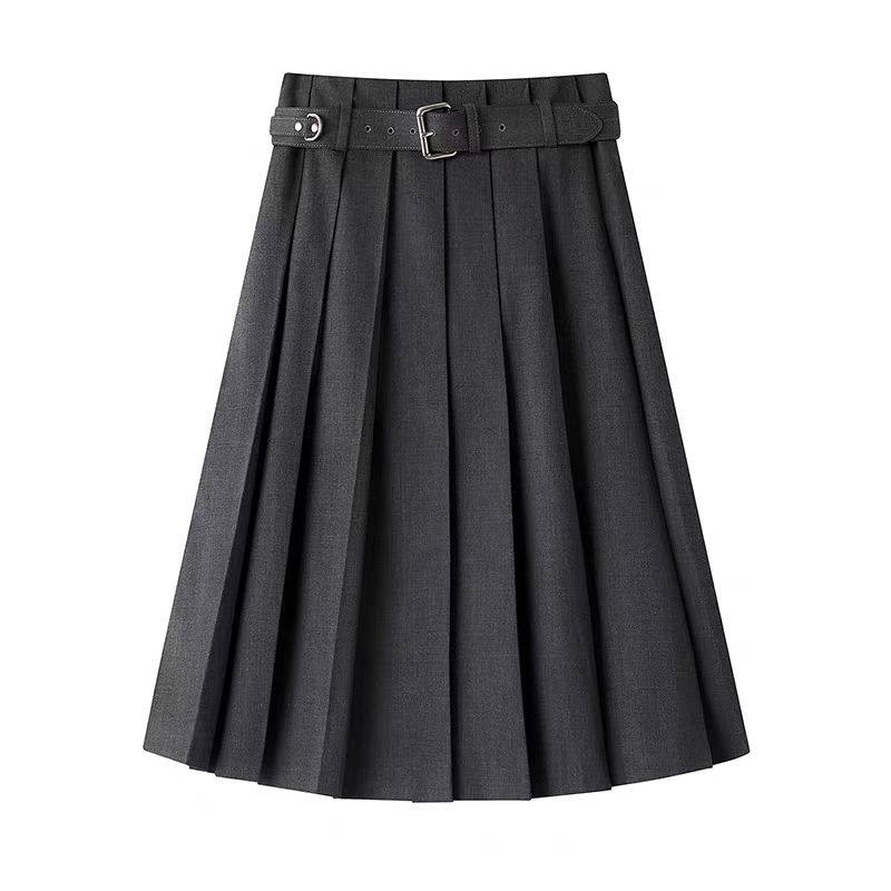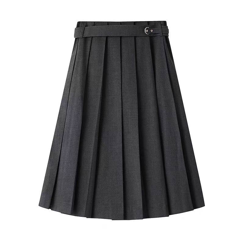 DN高端定制学院风高腰百褶裙女中长款 A字半身裙配腰带百褶半裙