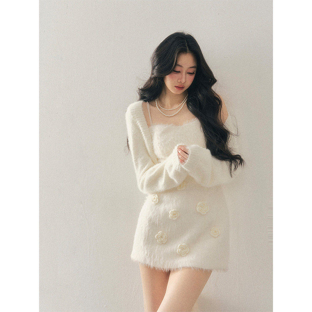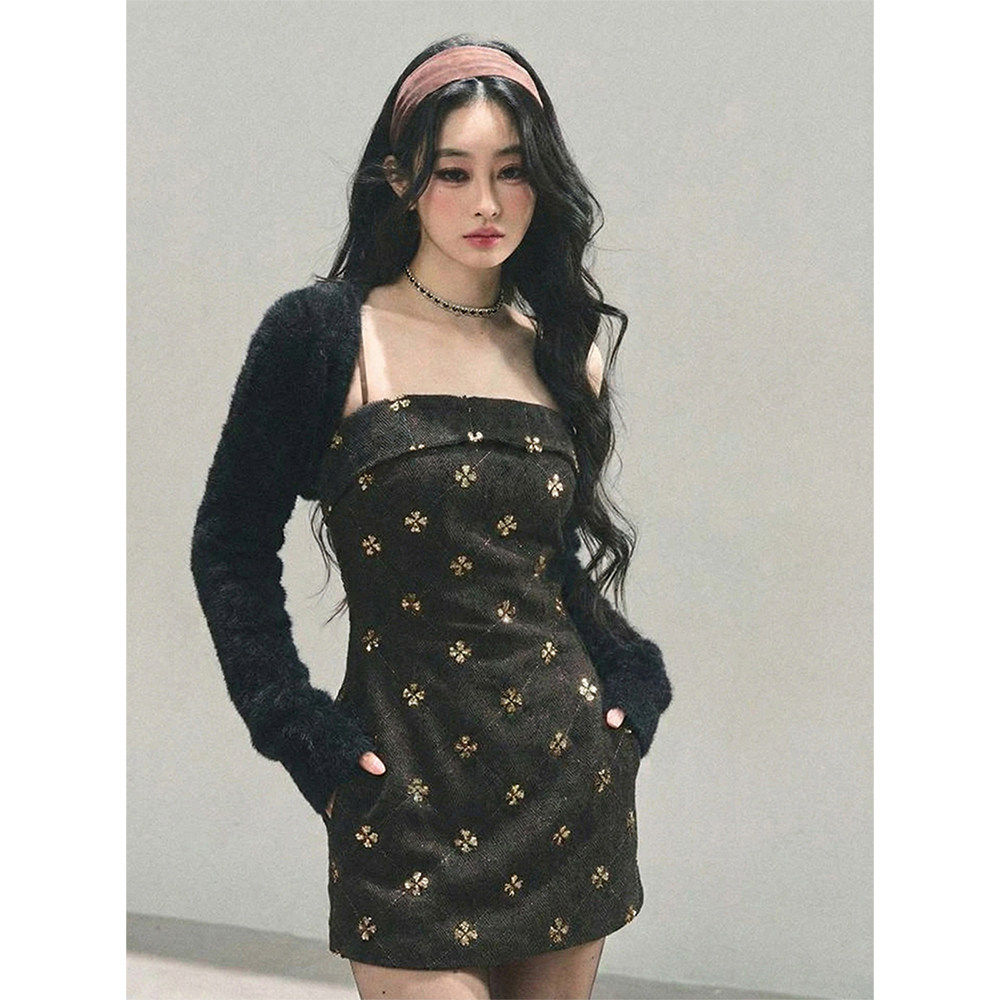 针织毛衣短款 AOMALM少也眼 长袖 %法式 披肩外套女冬 海棠花未眠