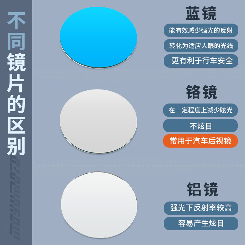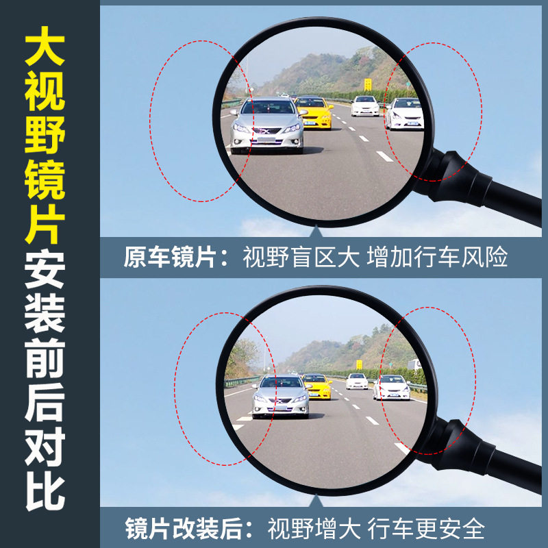 250C后视镜改装 大视野凸面镜片450高清广角蓝光倒车反光镜