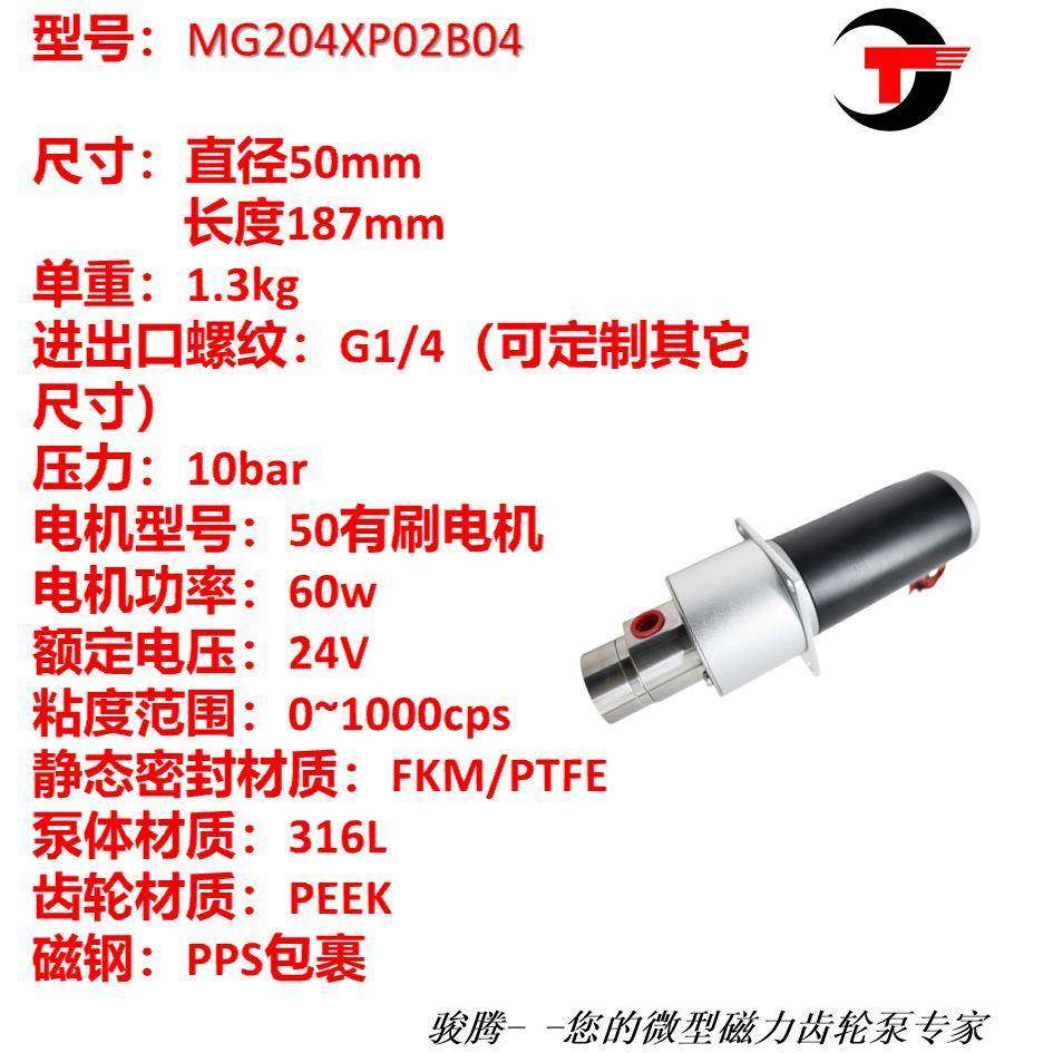 MG204XP02B04磁力齿轮泵计量泵0泄露水油酸碱溶剂不锈钢无脉冲