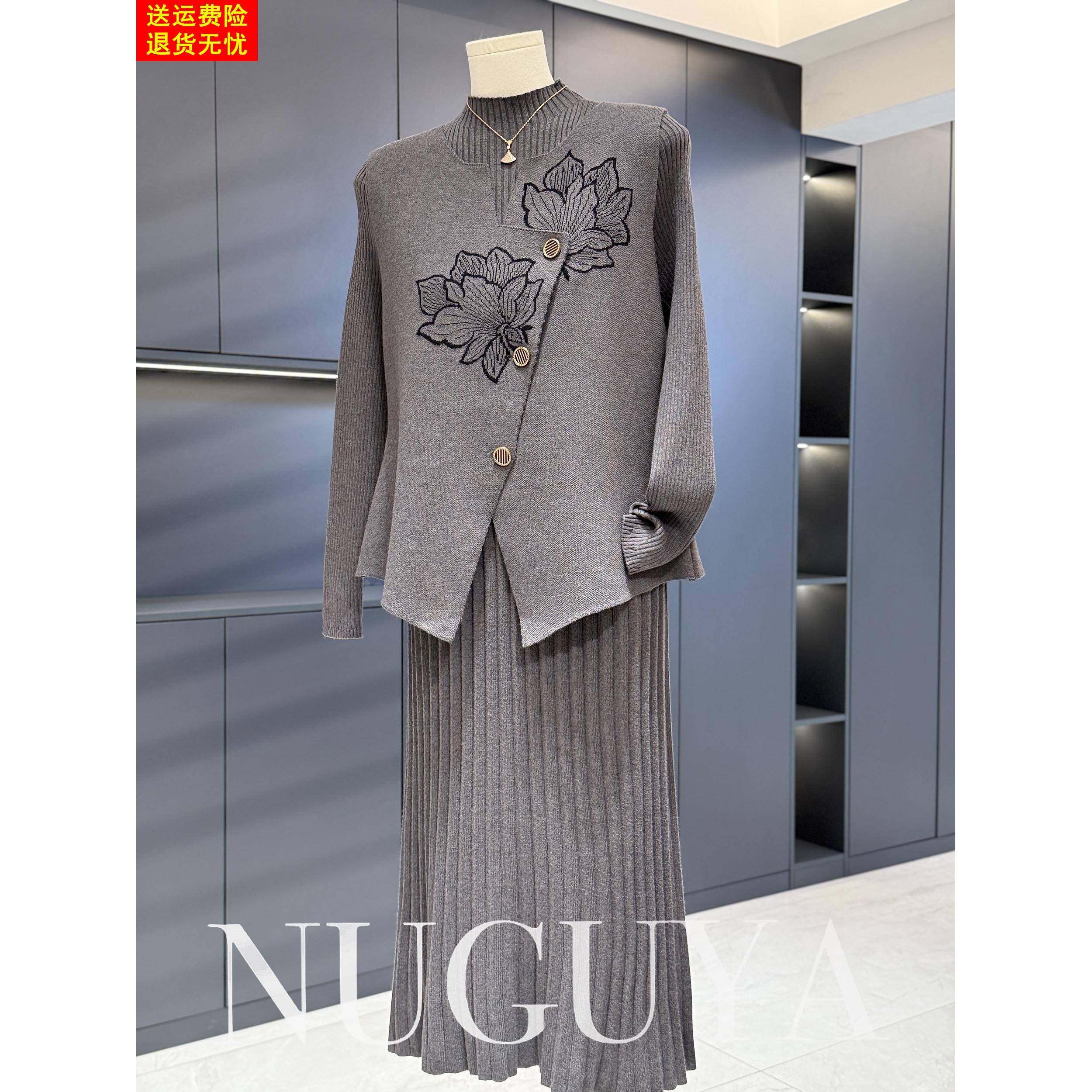 中老年遮肉毛衣套裙 秋冬两件套长款 时尚 气质妈妈针织连衣裙女套装