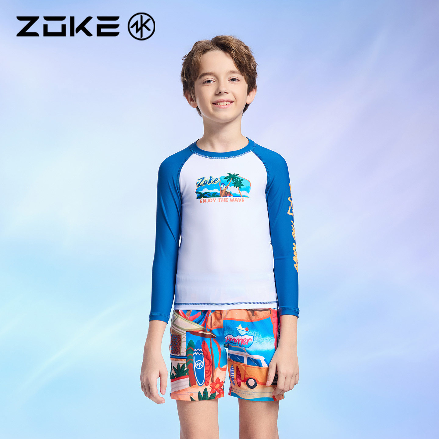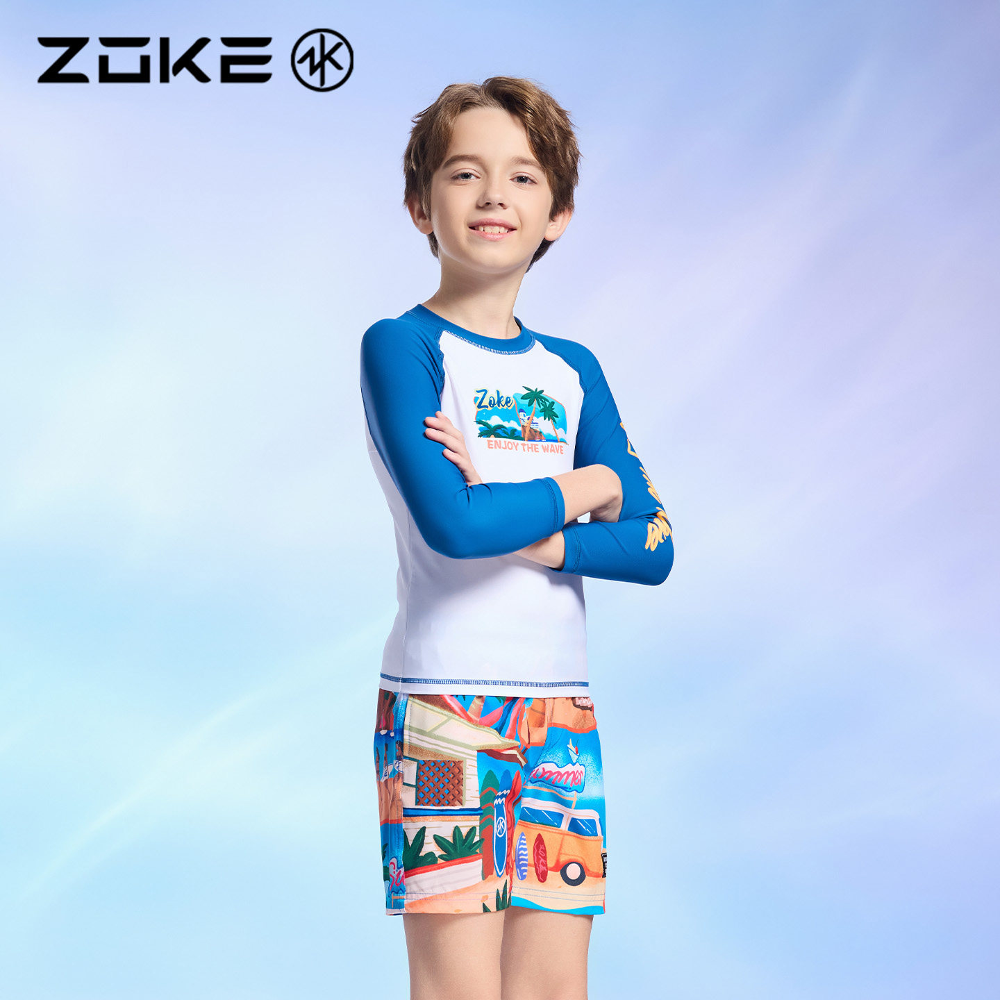 泡温泉男童中大童游泳衣 度假防晒沙滩裤 洲克儿童泳衣新款 分体长袖