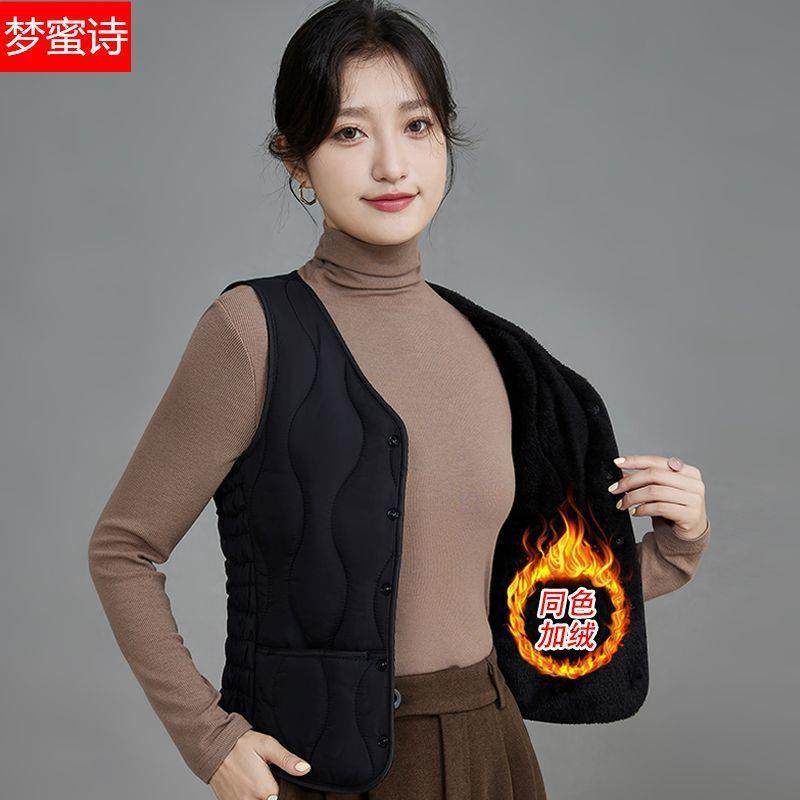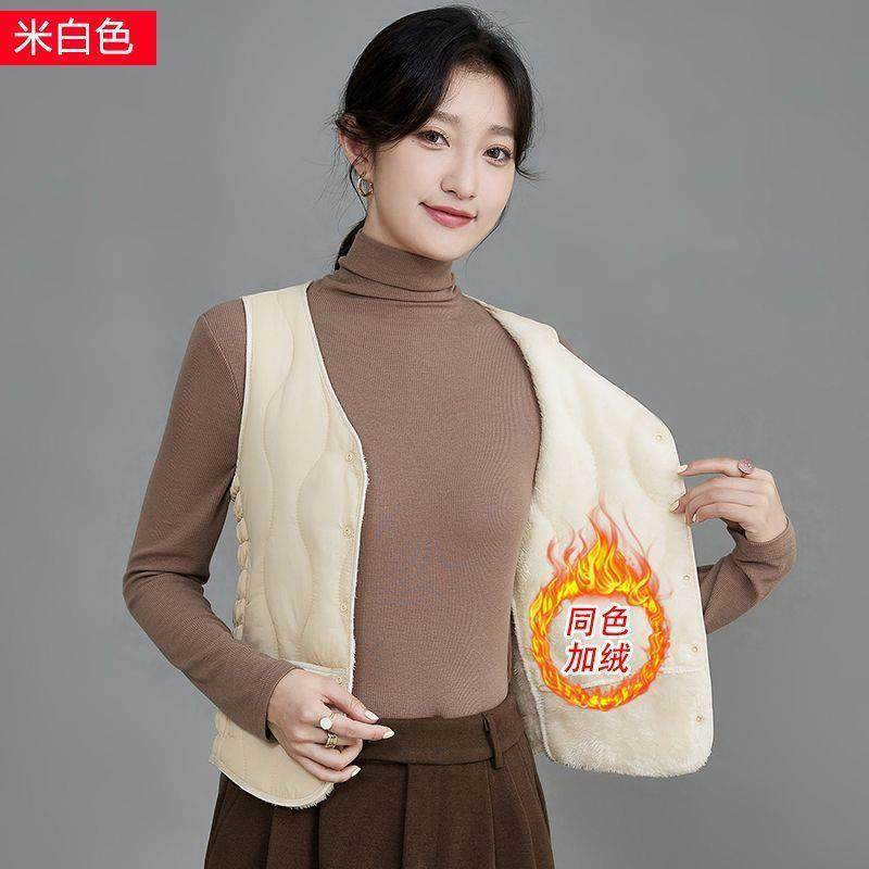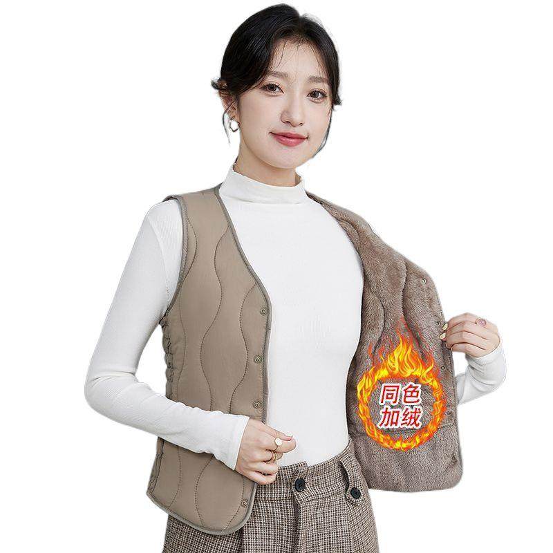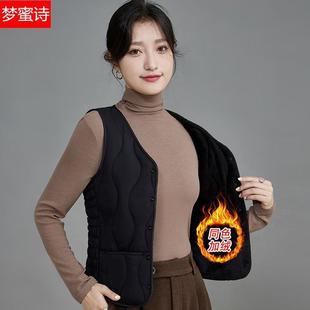 百搭内胆 v领羽绒棉坎肩修身 新款 秋冬加绒马甲女保暖背心短款