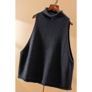 法柜100羊绒半高领毛衣马甲背心D女18J7 慵懒卷边 H春上7号 福利