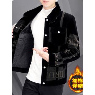 韩版 潮牌1515男士 外套加棉冬装 平绒短款 潮流翻领夹克上衣 秋冬季