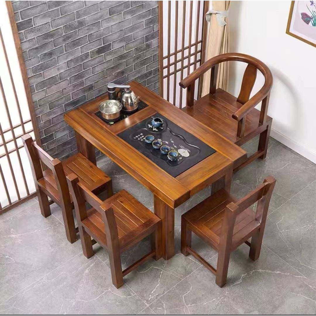 实木中式 移动茶桌家用小茶台客厅茶车阳台茶几柜烧水壶一体茶水柜