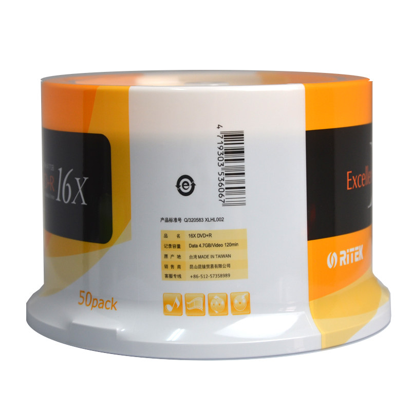 4.7G 空白光盘 铼德 刻录盘桶装 台产X系列DVD 光碟 50片 RITEK