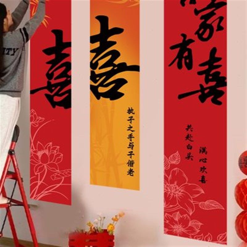 喜庆婚房布置装 饰新房结婚客厅条幅挂件背景窗帘背景拍摄道具套装