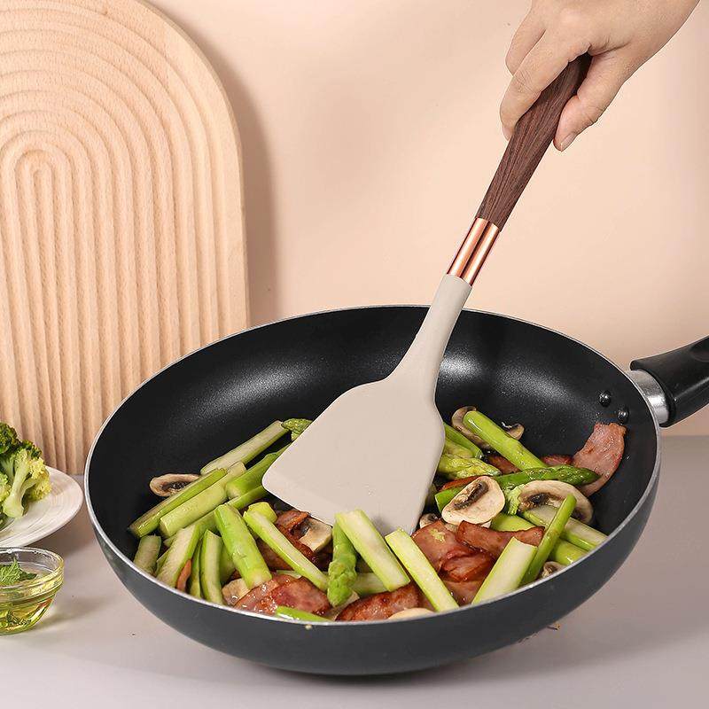 双枪硅胶锅铲家用炒菜铲子不粘锅专用汤勺漏勺饭勺耐高温厨具